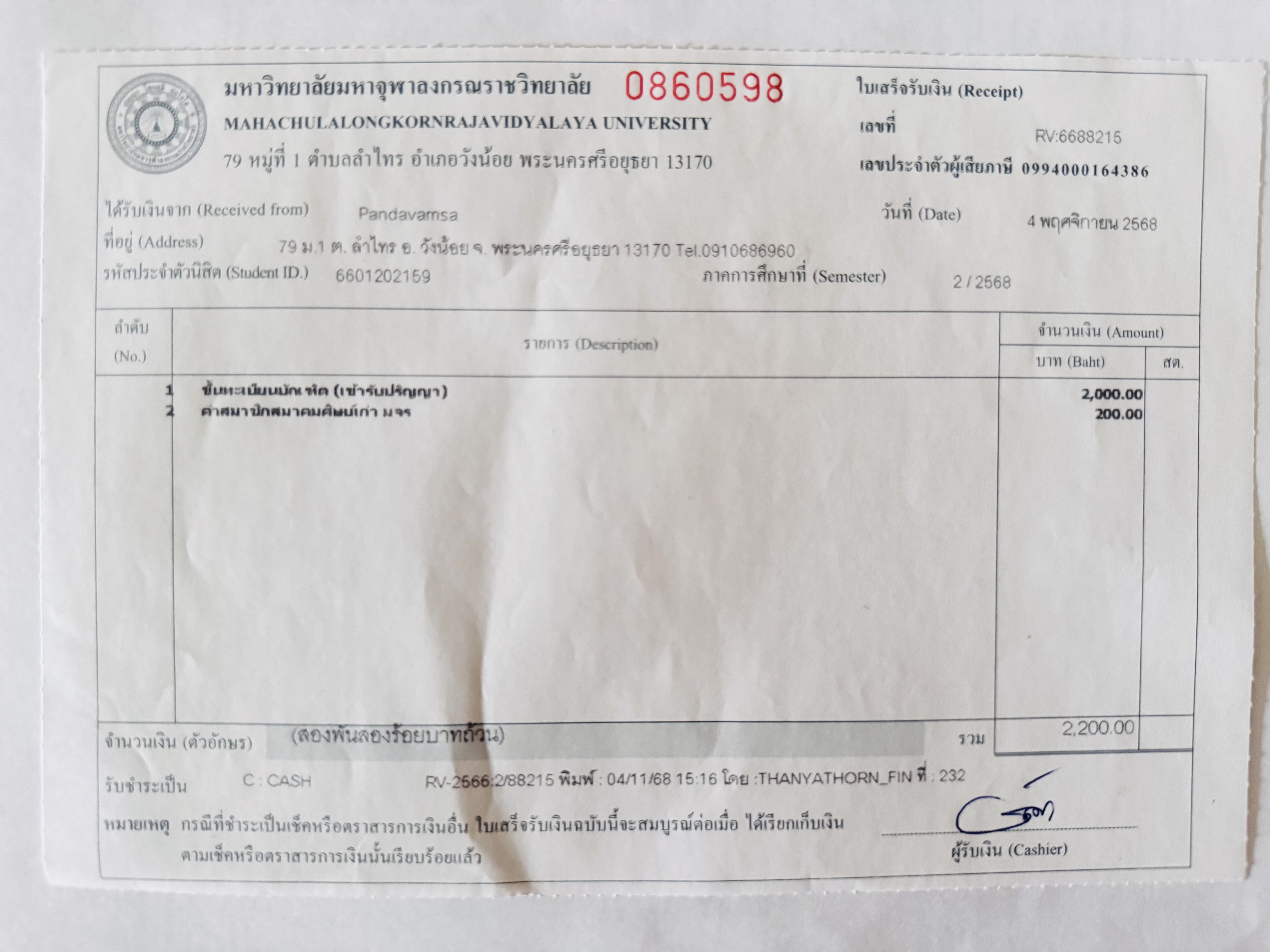 | รหัสนิสิต : 6601202159 | ชื่อ : Pandavamsa | ฉายา: - | นามสกุล: - |