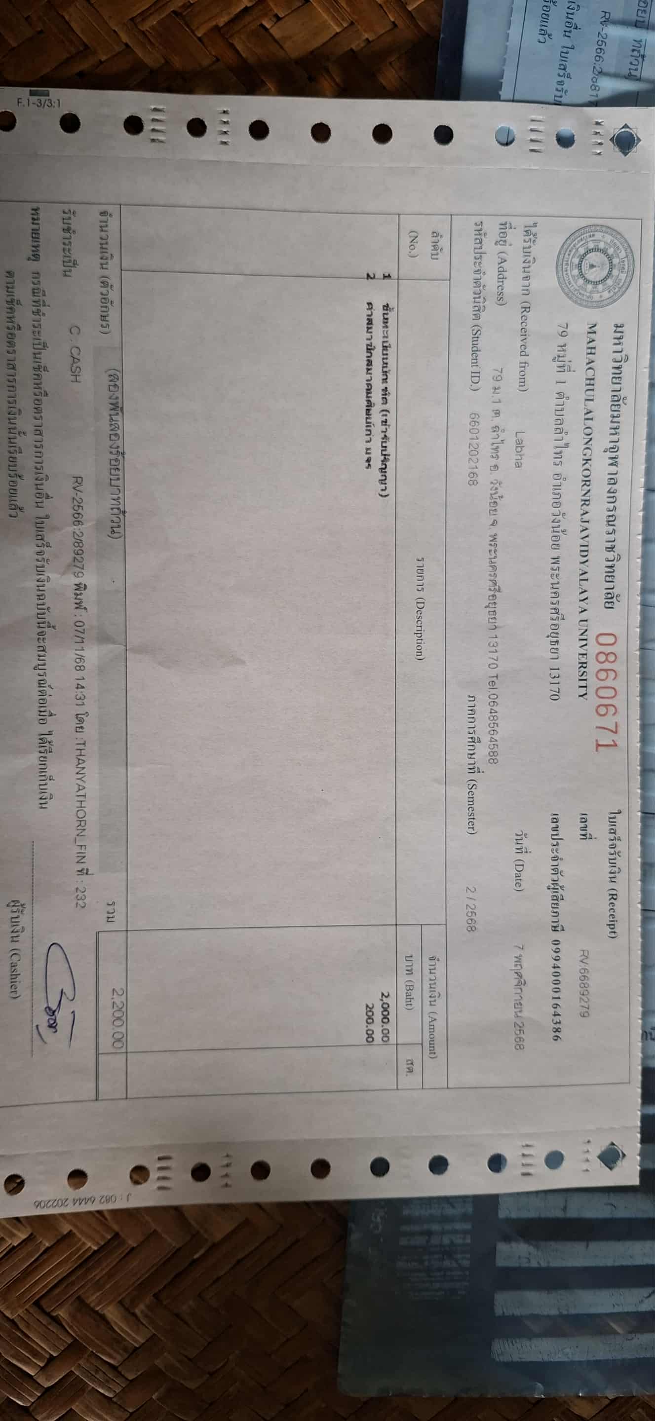 | รหัสนิสิต : 6601202168 | ชื่อ : Labha | ฉายา: - | นามสกุล: - |