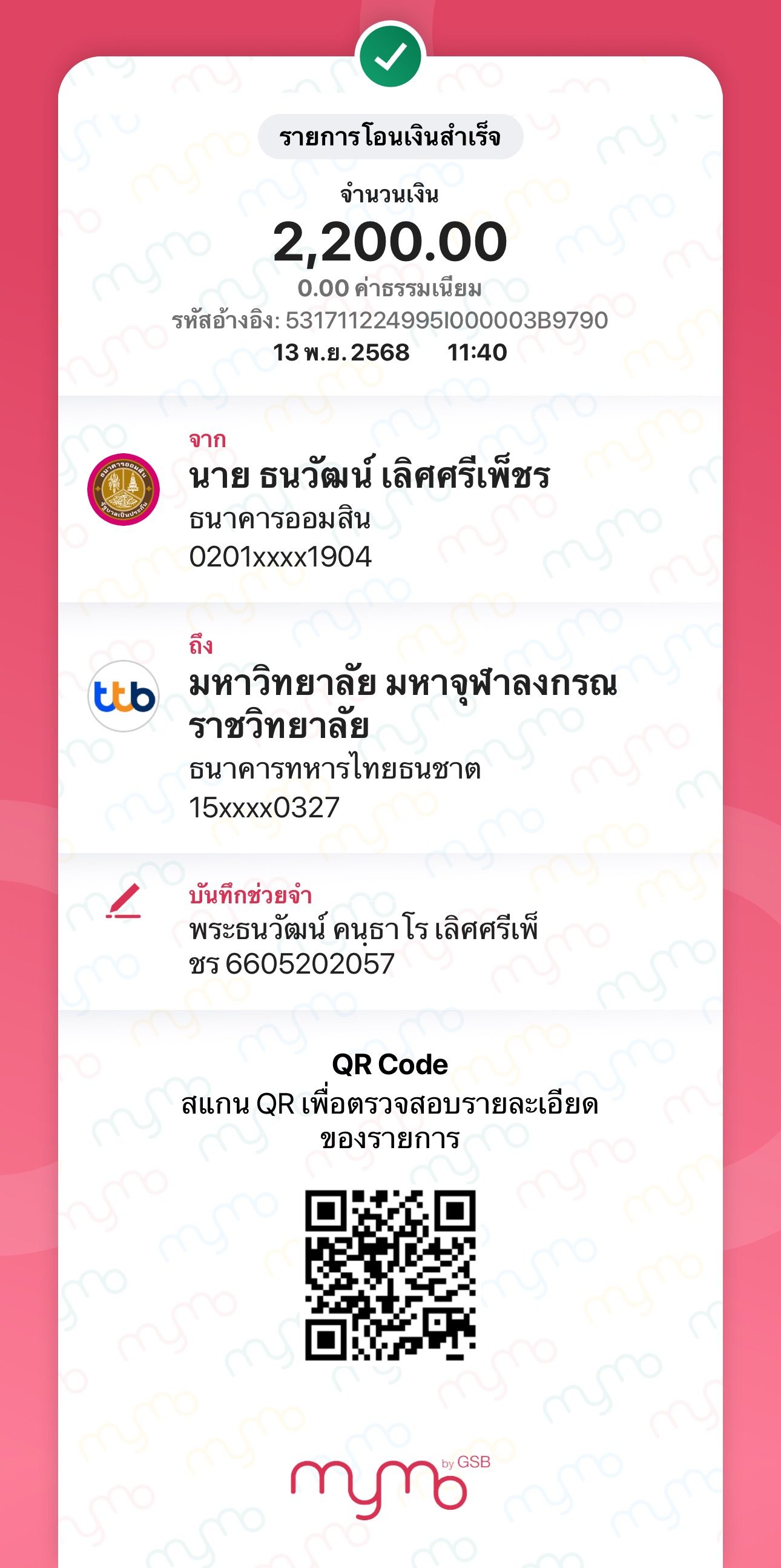 QR Code สำหรับสแกนเข้าร่วมพิธี