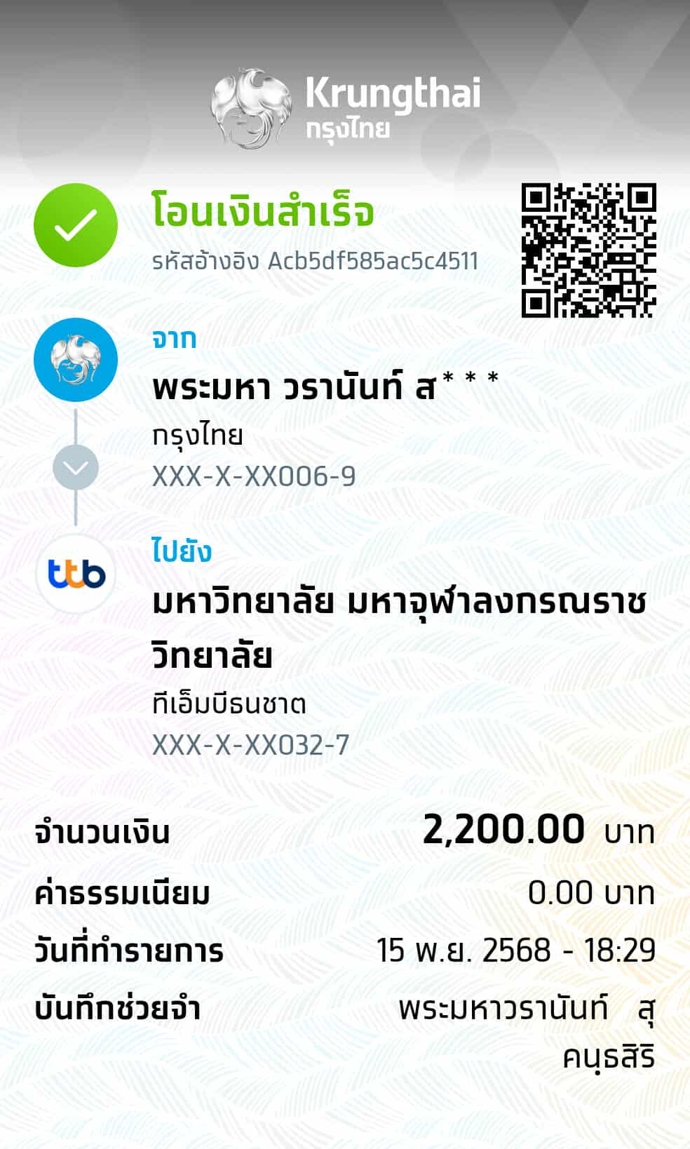 | รหัสนิสิต : 6605202063 | ชื่อ : พระมหาวรานันท์ | ฉายา: สุคนฺธสิริ | นามสกุล: เกษหอม |