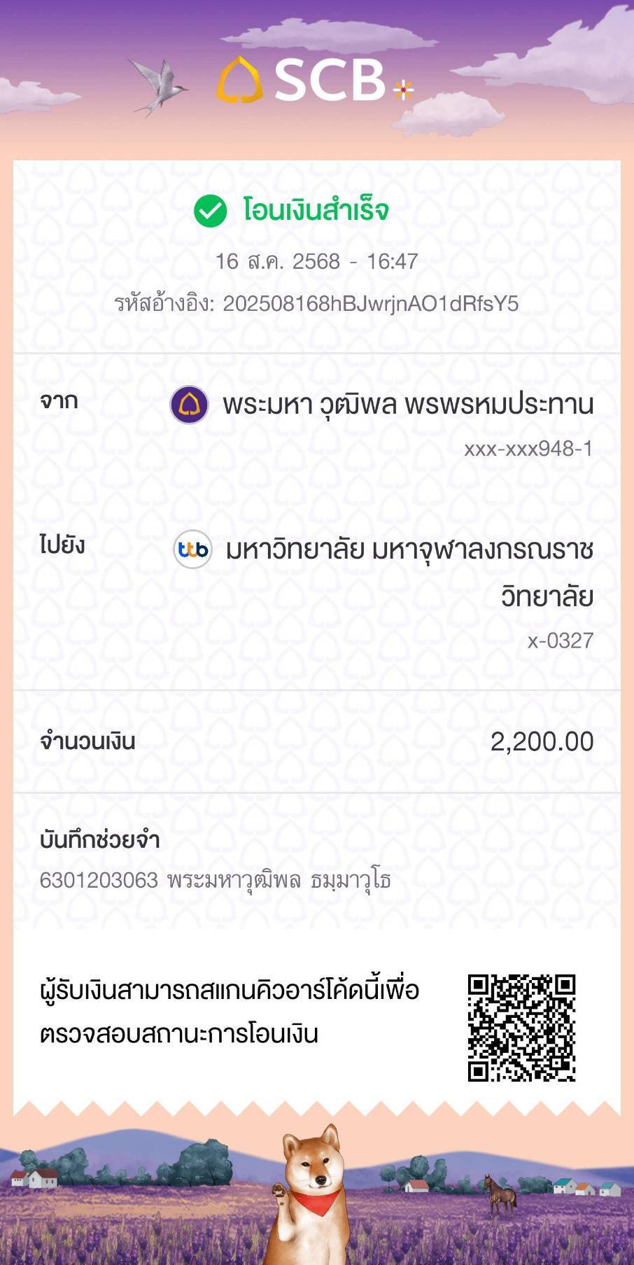 | สถานะเข้าพิธีประสาทปริญญา : บรรพชิต | ระดับ : ปริญญาโท | สังกัดคณะ: บัณฑิตวิทยาลัย | สาขาวิชา: จิตวิทยาชีวิตและความตาย |