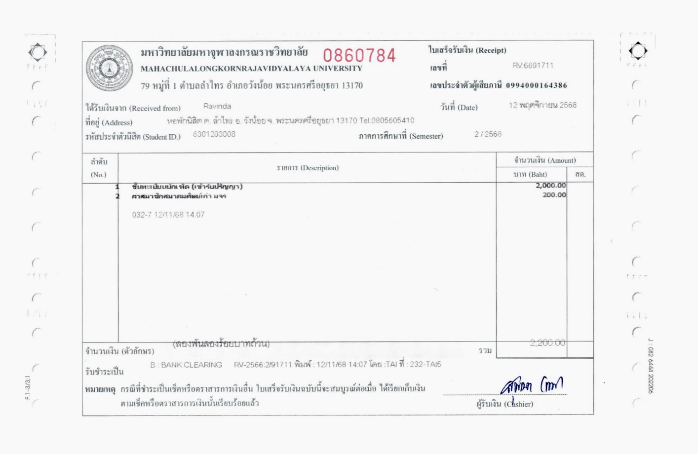 | รหัสนิสิต : 6301203008 | ชื่อ : Ravinda | ฉายา: - | นามสกุล: - |