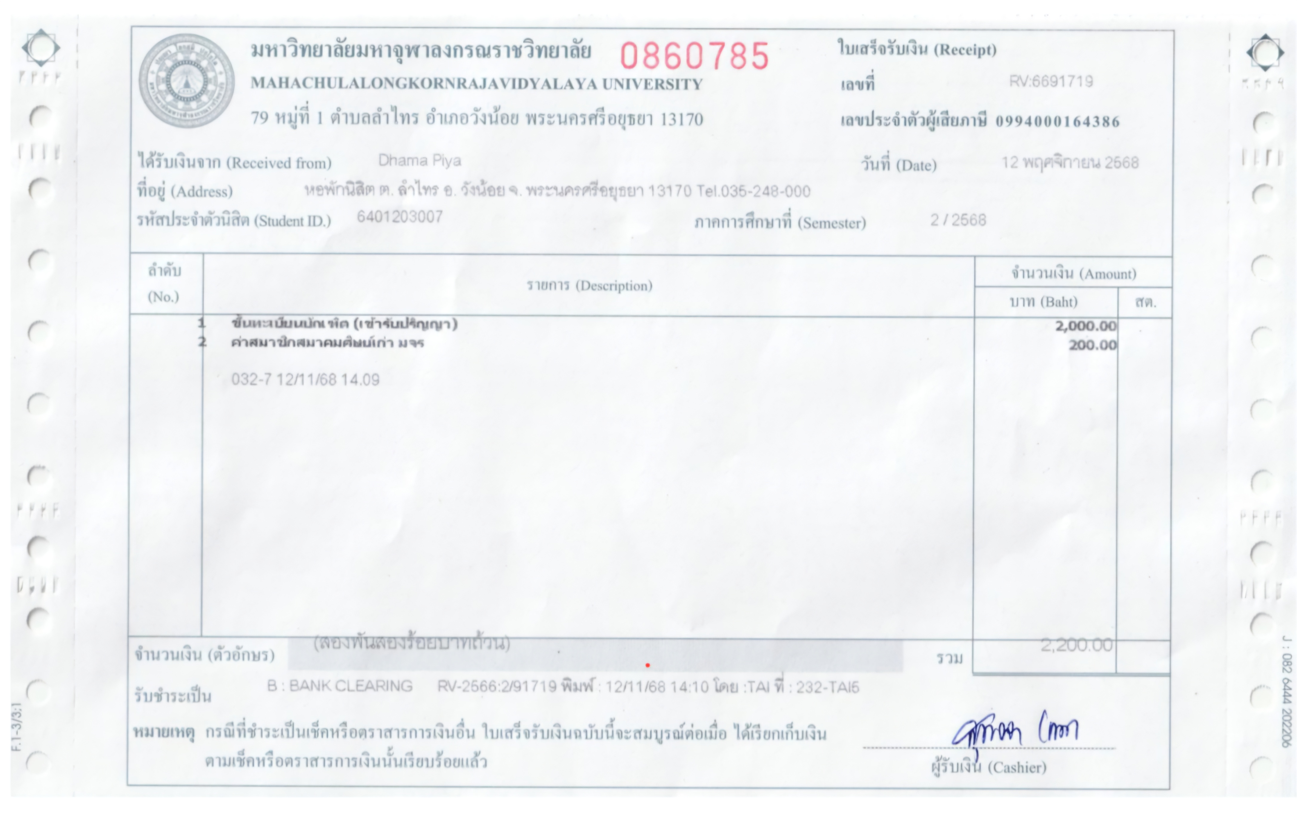 | รหัสนิสิต : 6401203007 | ชื่อ : Dhama Piya | ฉายา: - | นามสกุล: - |