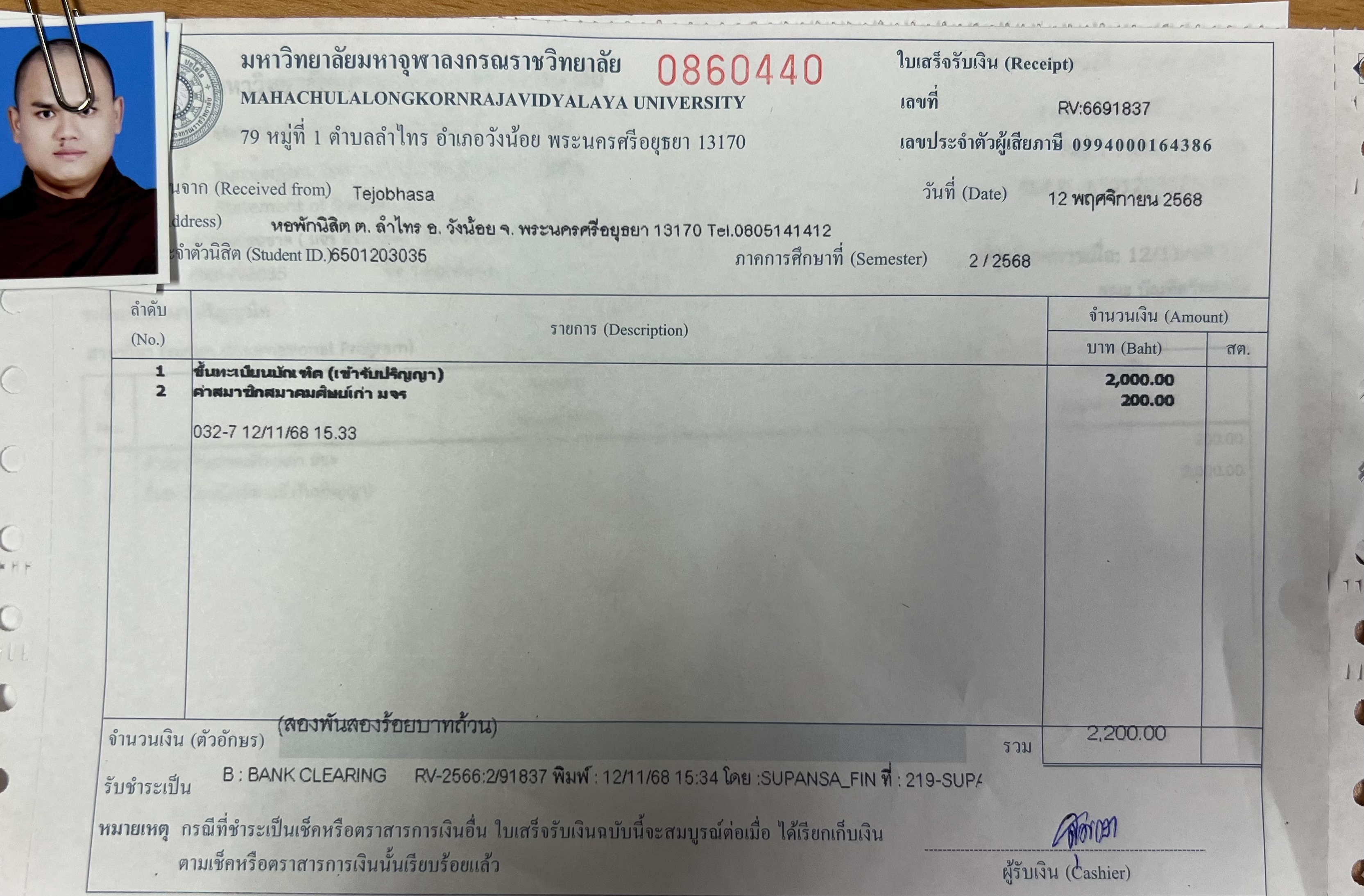 | รหัสนิสิต : 6501203035 | ชื่อ : Tejobhasa | ฉายา: - | นามสกุล: - |