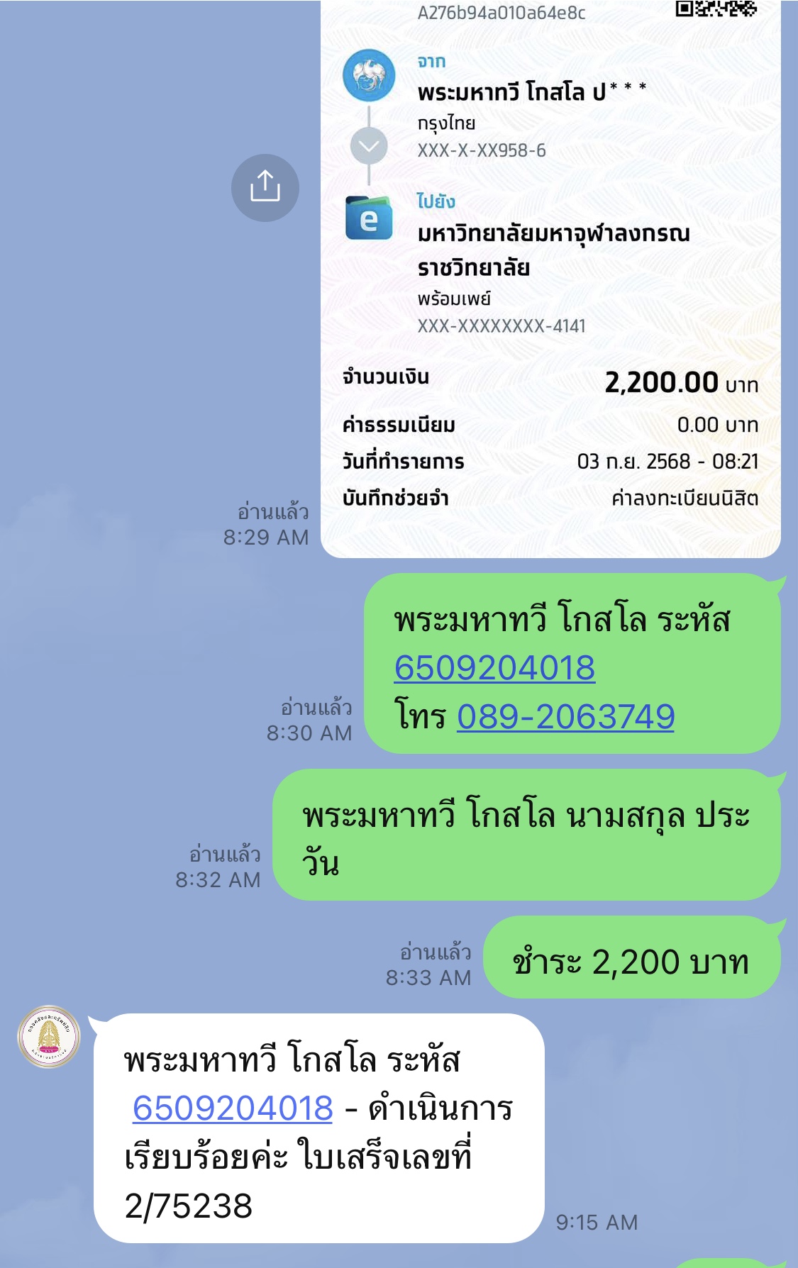 | รหัสนิสิต : 6509204018 | ชื่อ : พระมหาทวี | ฉายา: โกสโล | นามสกุล: ประวัน |