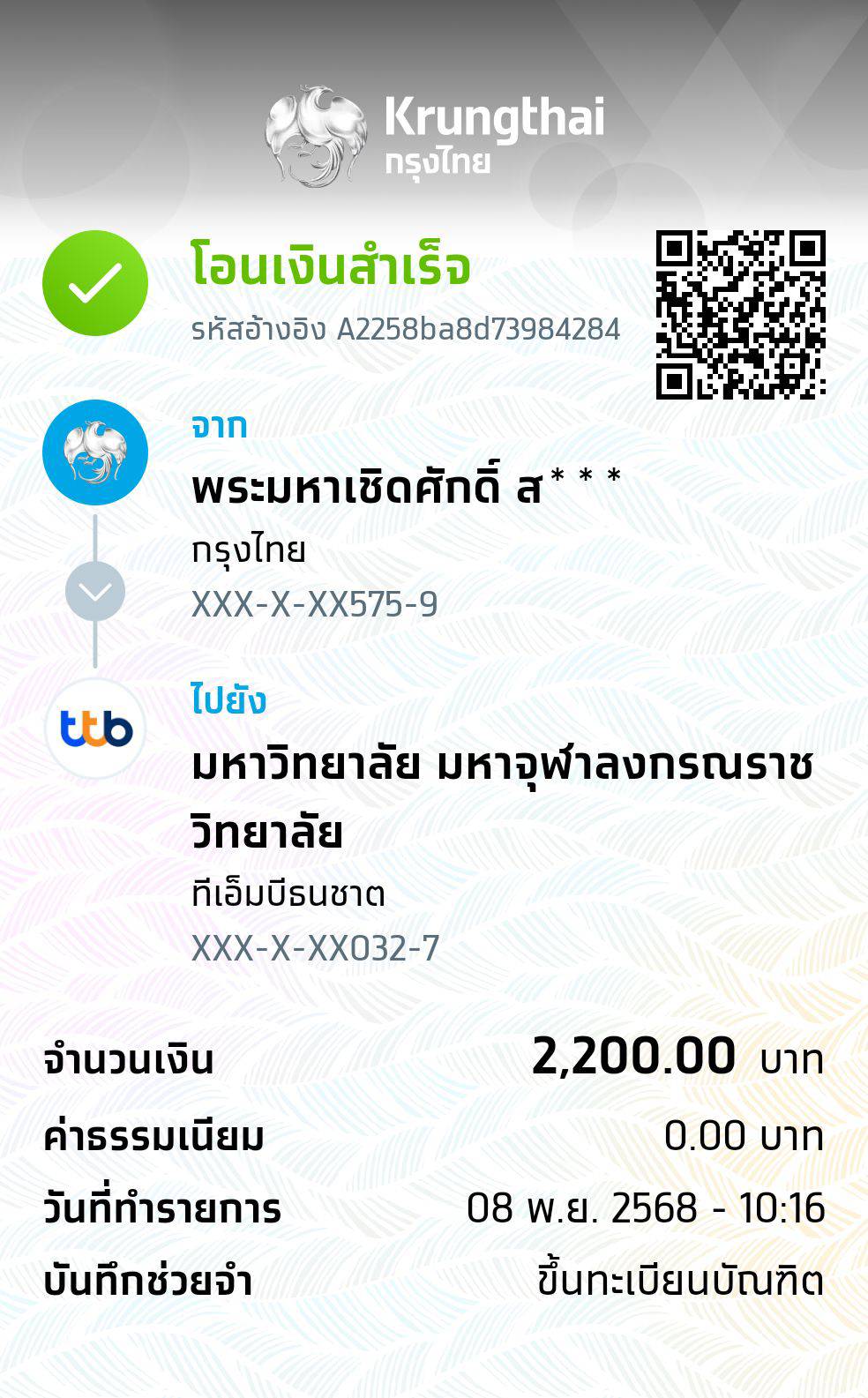 QR Code สำหรับสแกนเข้าร่วมพิธี * เข้าพิธีประสาทปริญญาวันที่ 7 ธันวาคม 2568 |