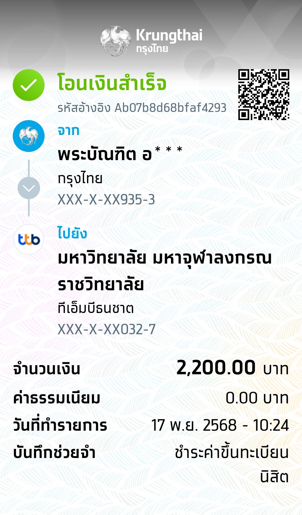 QR Code สำหรับสแกนเข้าร่วมพิธี * เข้าพิธีประสาทปริญญาวันที่ 7 ธันวาคม 2568 |