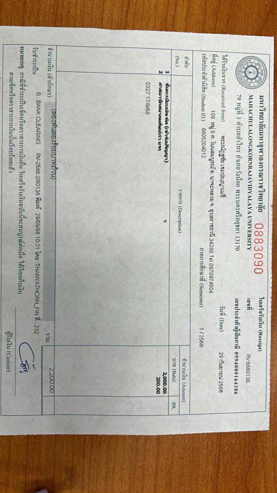 | รหัสนิสิต : 6605204012 | ชื่อ : พระณัฏฐชัย | ฉายา: เขมปญฺญาเมธี | นามสกุล: วังญาติ |