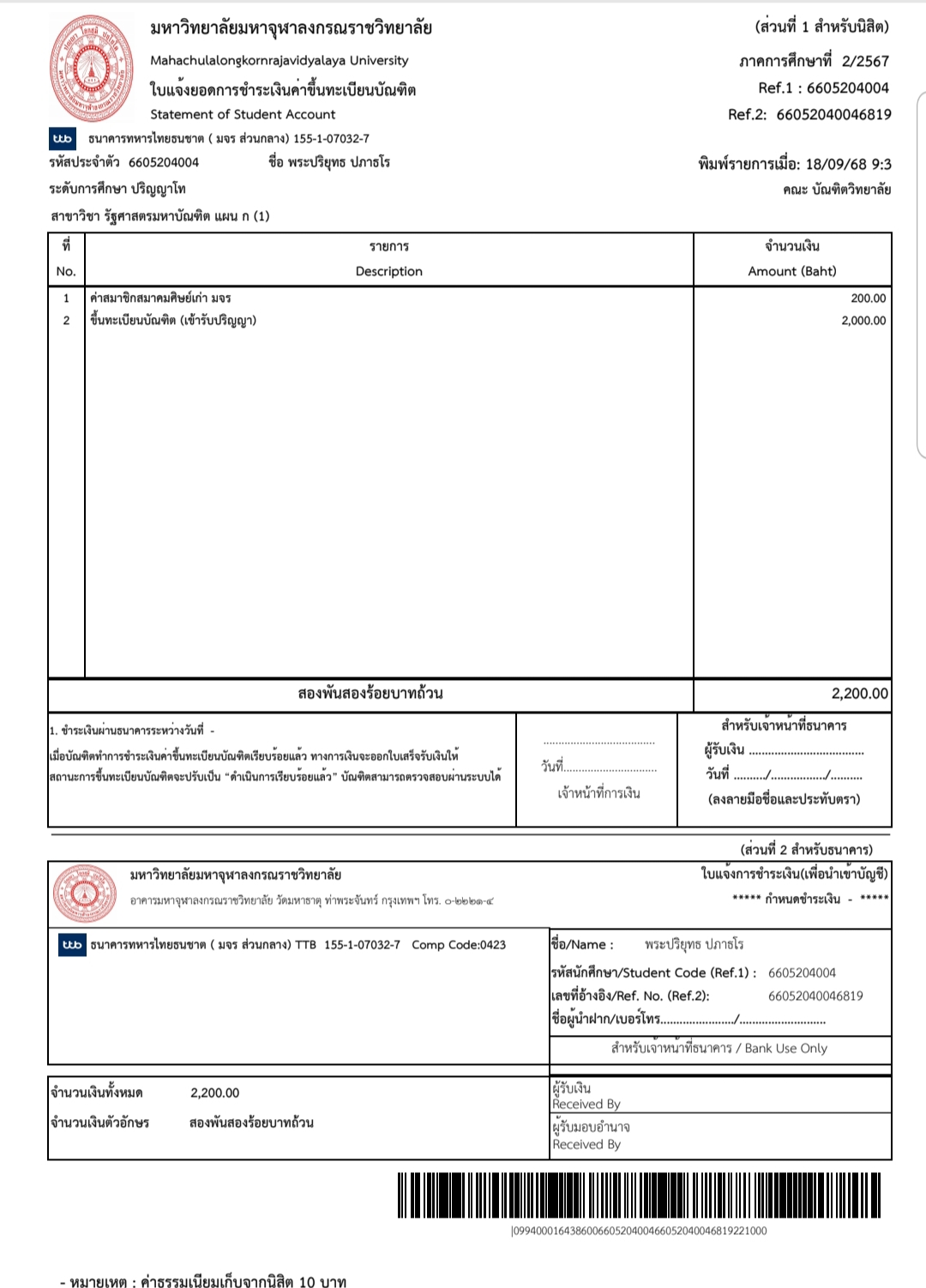 | รหัสนิสิต : 6605204004 | ชื่อ : พระปริยุทธ | ฉายา: ปภาธโร | นามสกุล: พรรณวรรณ |