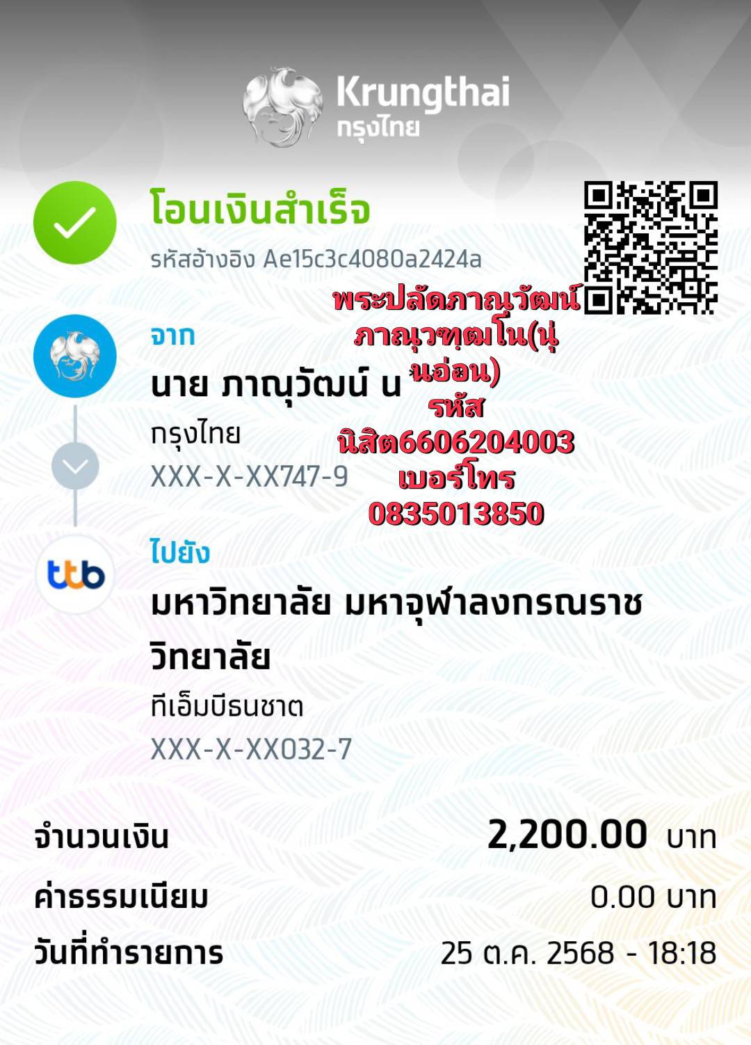 QR Code สำหรับสแกนเข้าร่วมพิธี * เข้าพิธีประสาทปริญญาวันที่ 7 ธันวาคม 2568 |