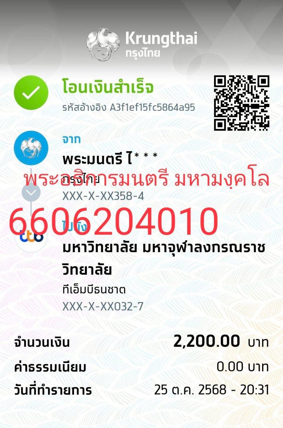* เข้าพิธีประสาทปริญญาวันที่ 7 ธันวาคม 2568