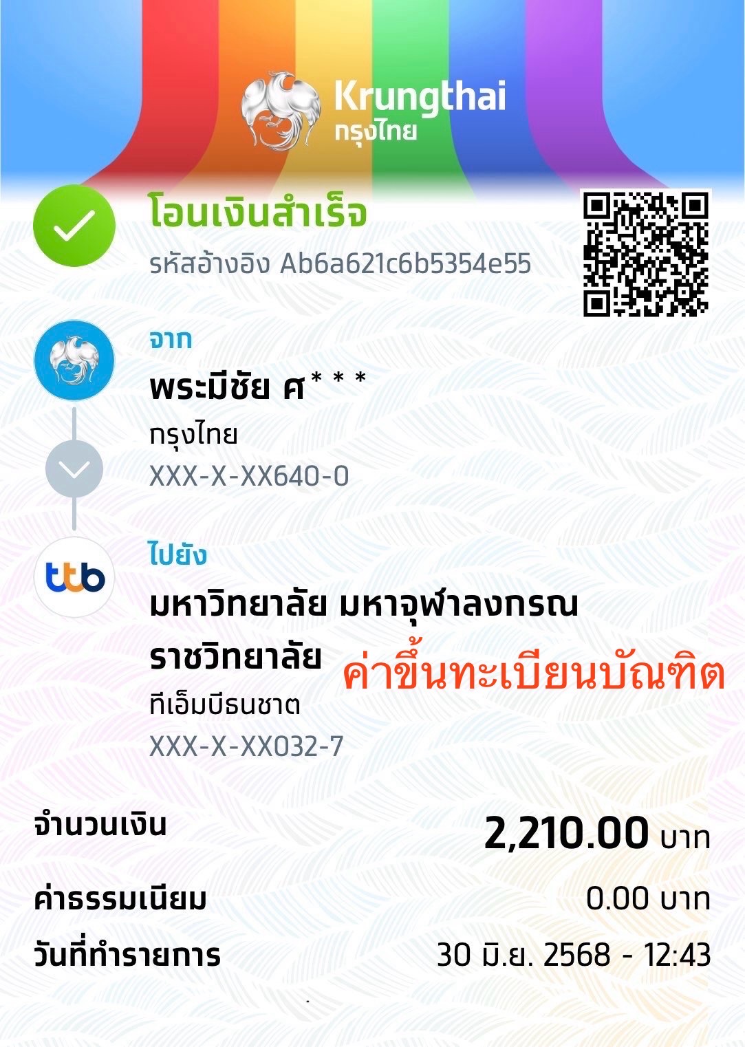 | สถานะเข้าพิธีประสาทปริญญา : บรรพชิต | ระดับ : ปริญญาโท | สังกัดคณะ: บัณฑิตวิทยาลัย | สาขาวิชา: รัฐศาสตร์ |