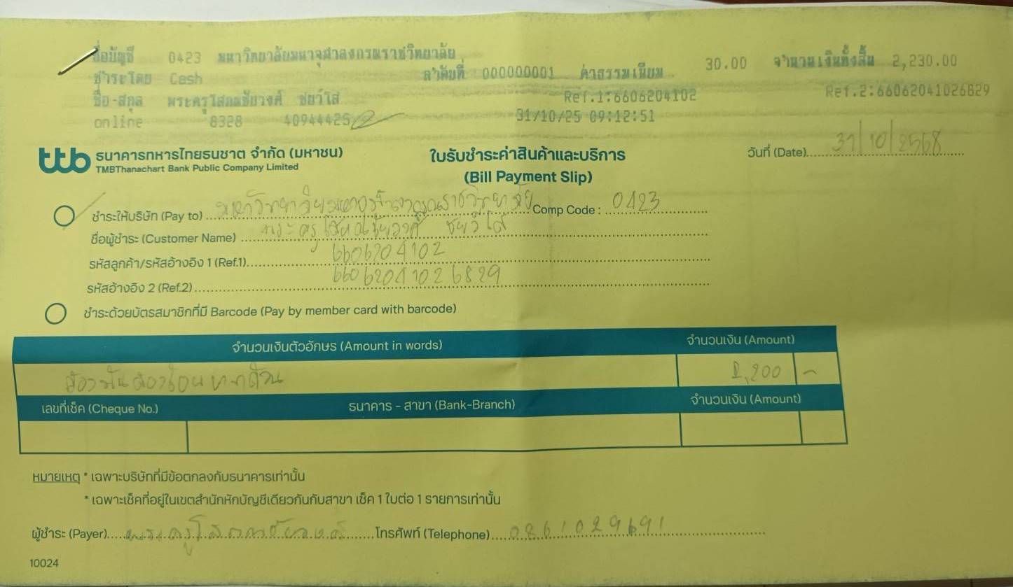 | รหัสนิสิต : 6606204102 | ชื่อ : พระครูโสภณชัยวงศ์ | ฉายา: ชยวํโส | นามสกุล: ล้อมวงศ์ |