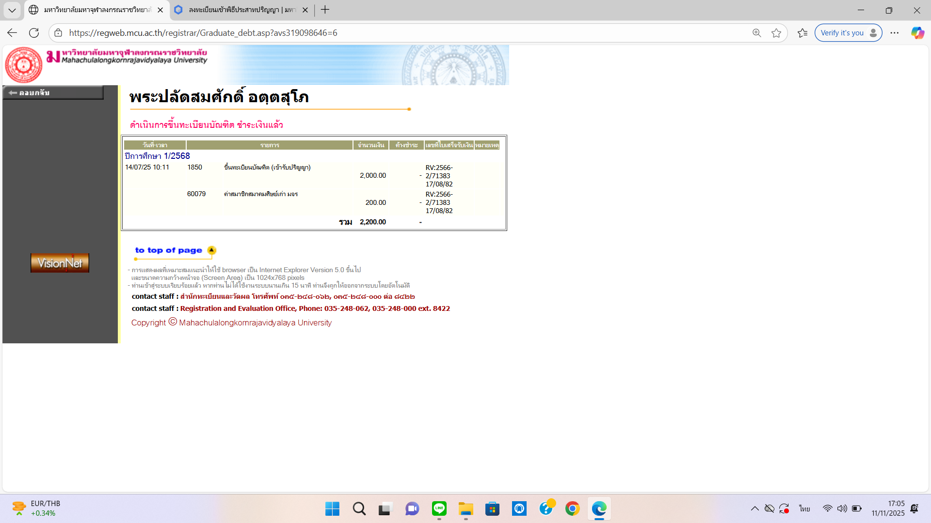 ค่าขึ้นทะเบียนบัณฑิต