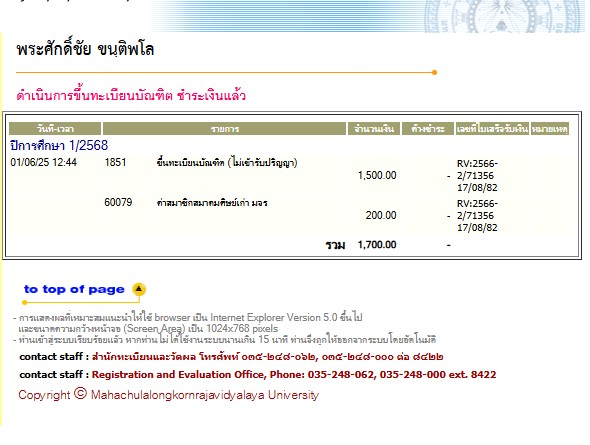 * เข้าพิธีประสาทปริญญาวันที่ 6 ธันวาคม 2568