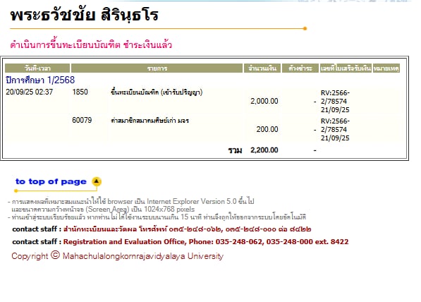 | รหัสนิสิต : 6645204005 | ชื่อ : พระธวัชชัย | ฉายา: สิรินฺธโร | นามสกุล: ศิริวัฒน์ |