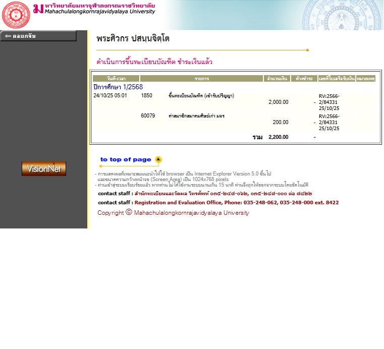 สถานะเข้าพิธีประสาทปริญญา : บรรพชิต ระดับ : ปริญญาโท สังกัดคณะ: บัณฑิตวิทยาลัย สาขาวิชา: การพัฒนาสังคม