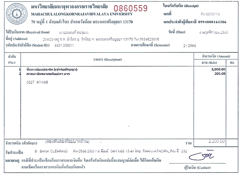 | รหัสนิสิต : 6601205011 | ชื่อ : นายณพนต์ | ฉายา: - | นามสกุล: ทองยวง |