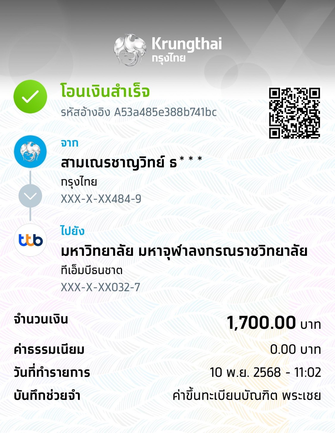 * เข้าพิธีประสาทปริญญาวันที่ 6 ธันวาคม 2568