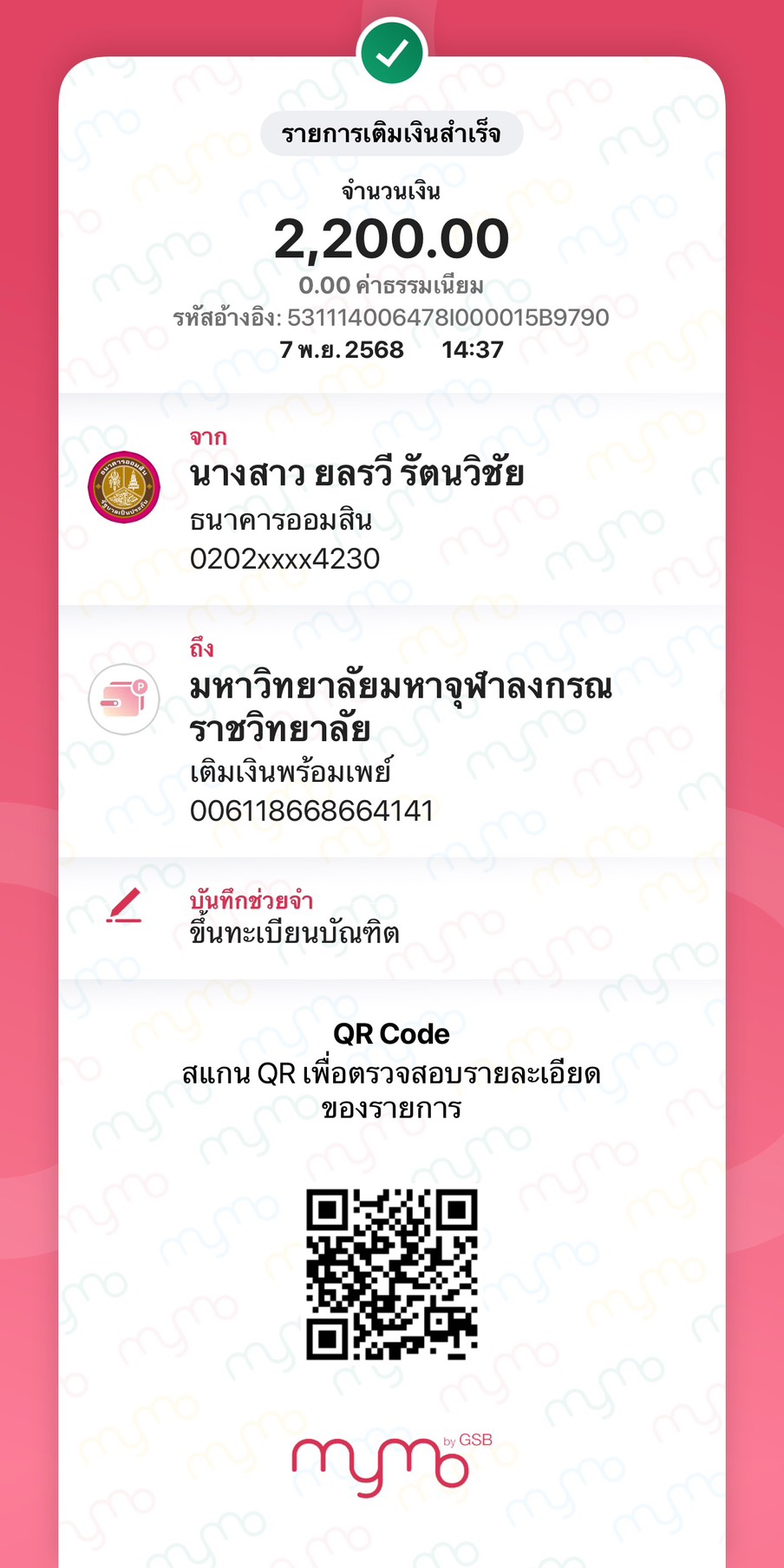 ใบเสร็จรับเงิน/เอกสารยืนยันการชำระเงิน(แนบเอกสาร)