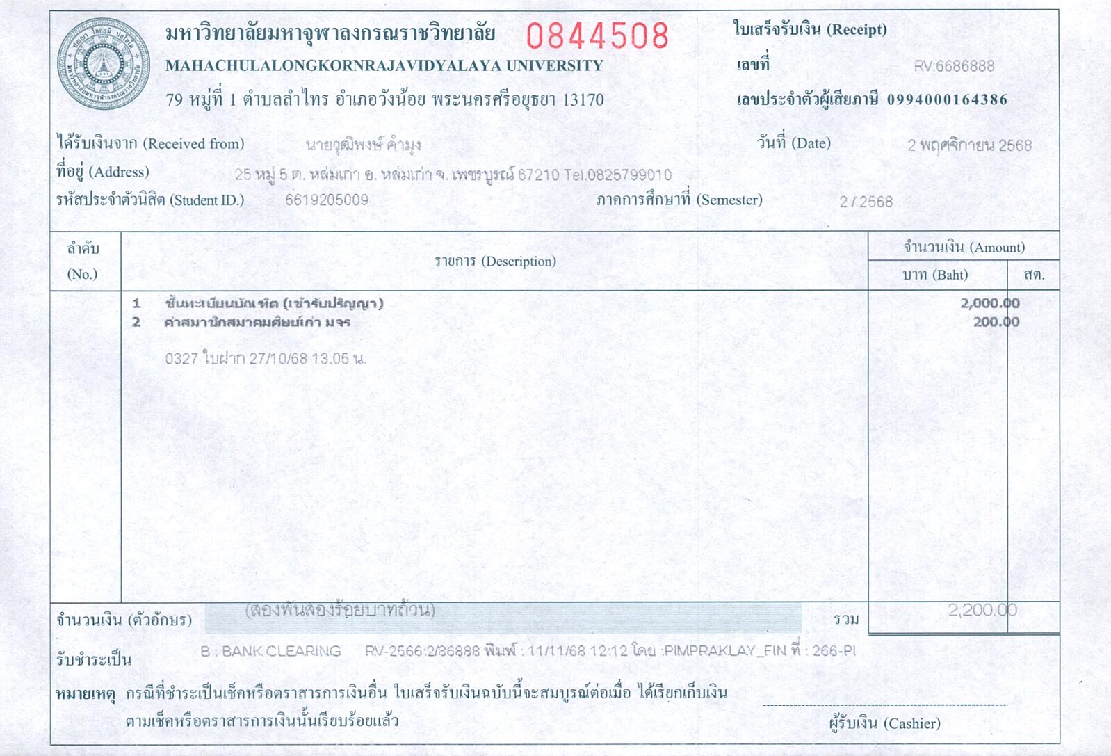 | รหัสนิสิต : 6619205009 | ชื่อ : นายวุฒิพงษ์ | ฉายา: - | นามสกุล: คำมุง |