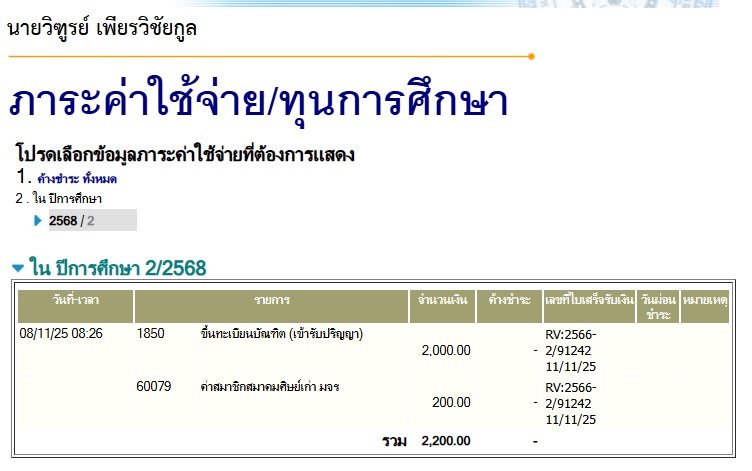 | รหัสนิสิต : 6606205110 | ชื่อ : นายวิฑูรย์ | ฉายา: - | นามสกุล: เพียรวิชัยกูล |