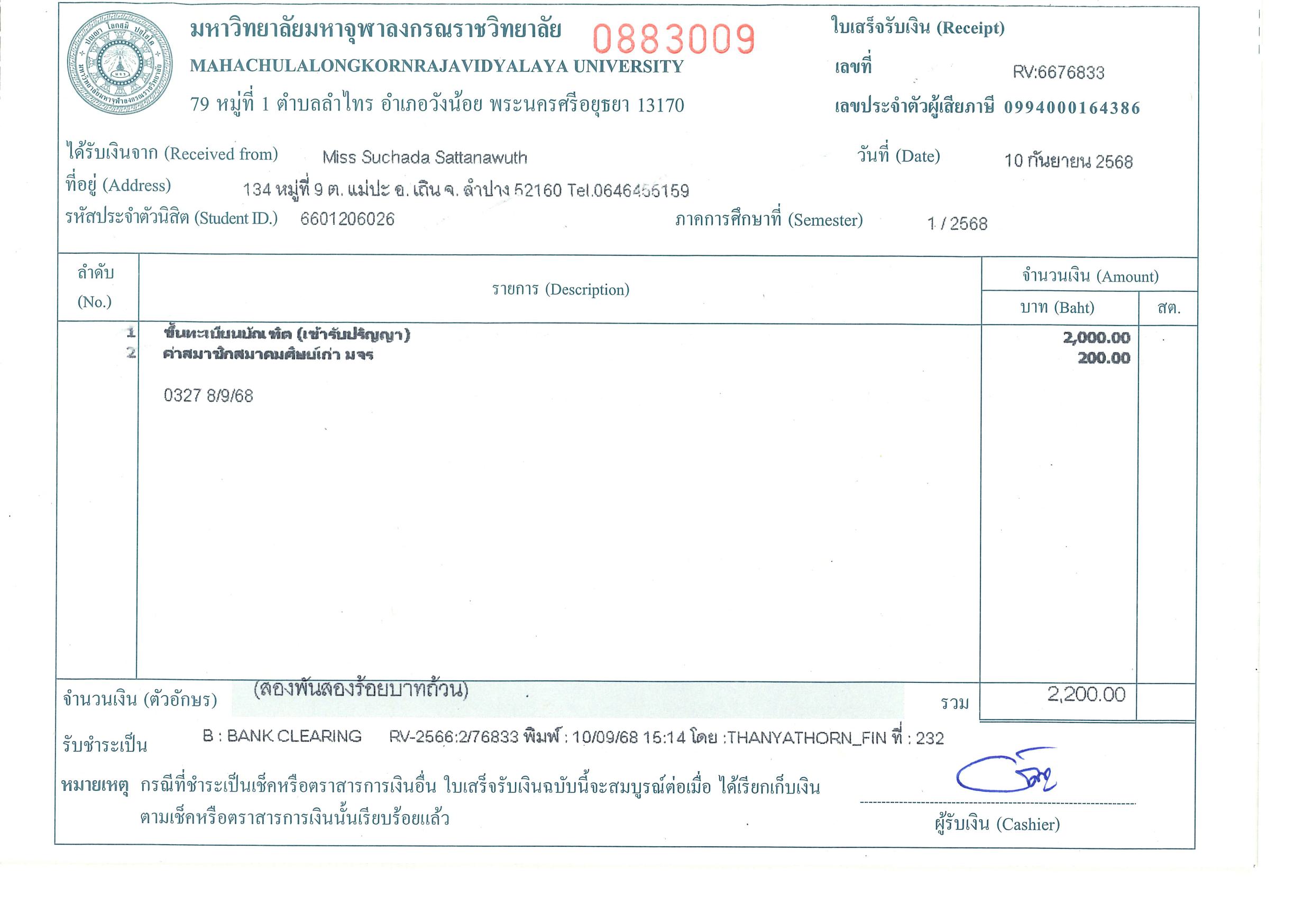 | รหัสนิสิต : 6601206026 | ชื่อ : Miss Suchada | ฉายา: - | นามสกุล: Sattanawuth |