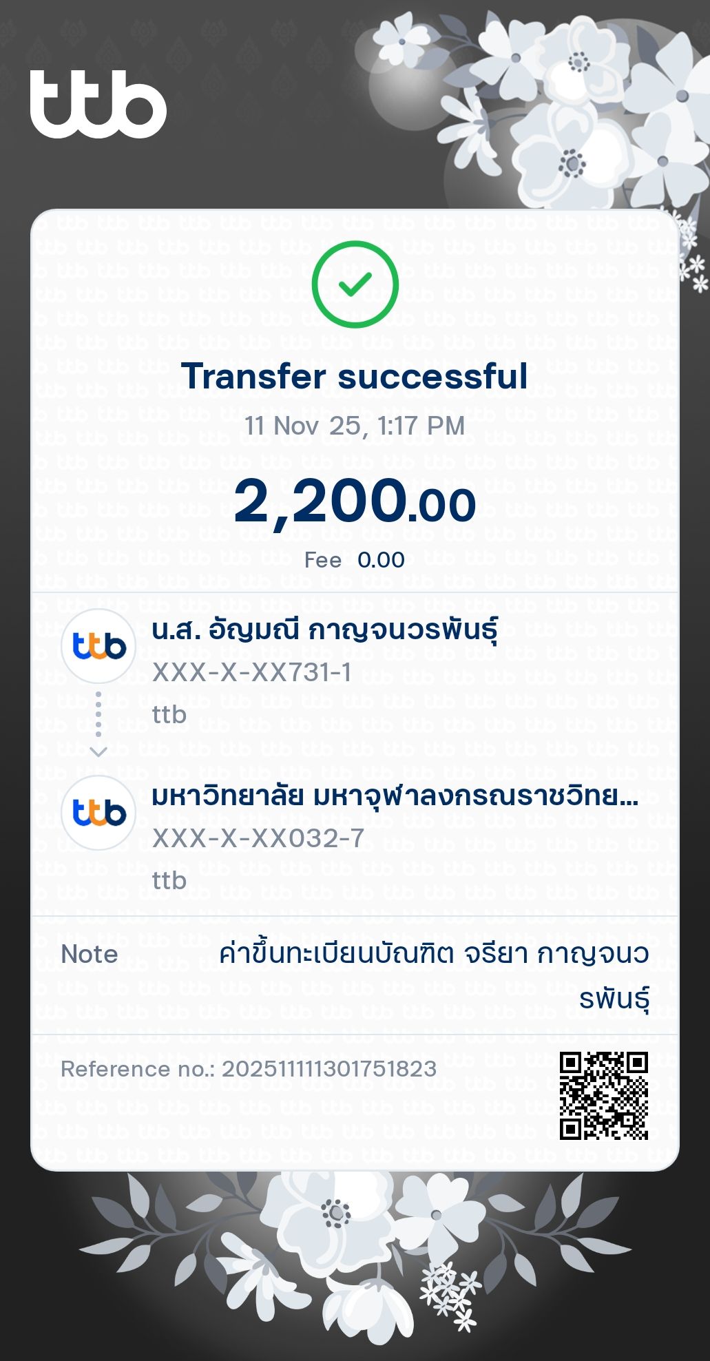 | รหัสนิสิต : 6601201062 | ชื่อ : นางจรียา | ฉายา: - | นามสกุล: กาญจนรพันธุ์ |