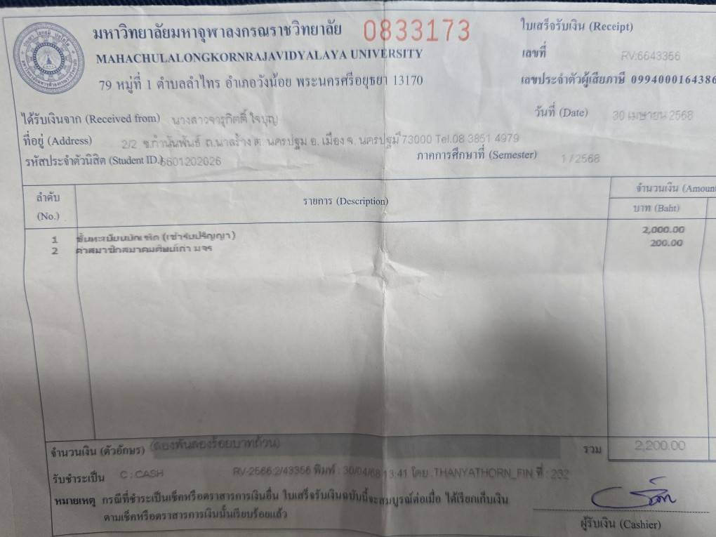 | รหัสนิสิต : 6601202026 | ชื่อ : นางสาวจารุกิตติ์ | ฉายา: - | นามสกุล: ใจบุญ |