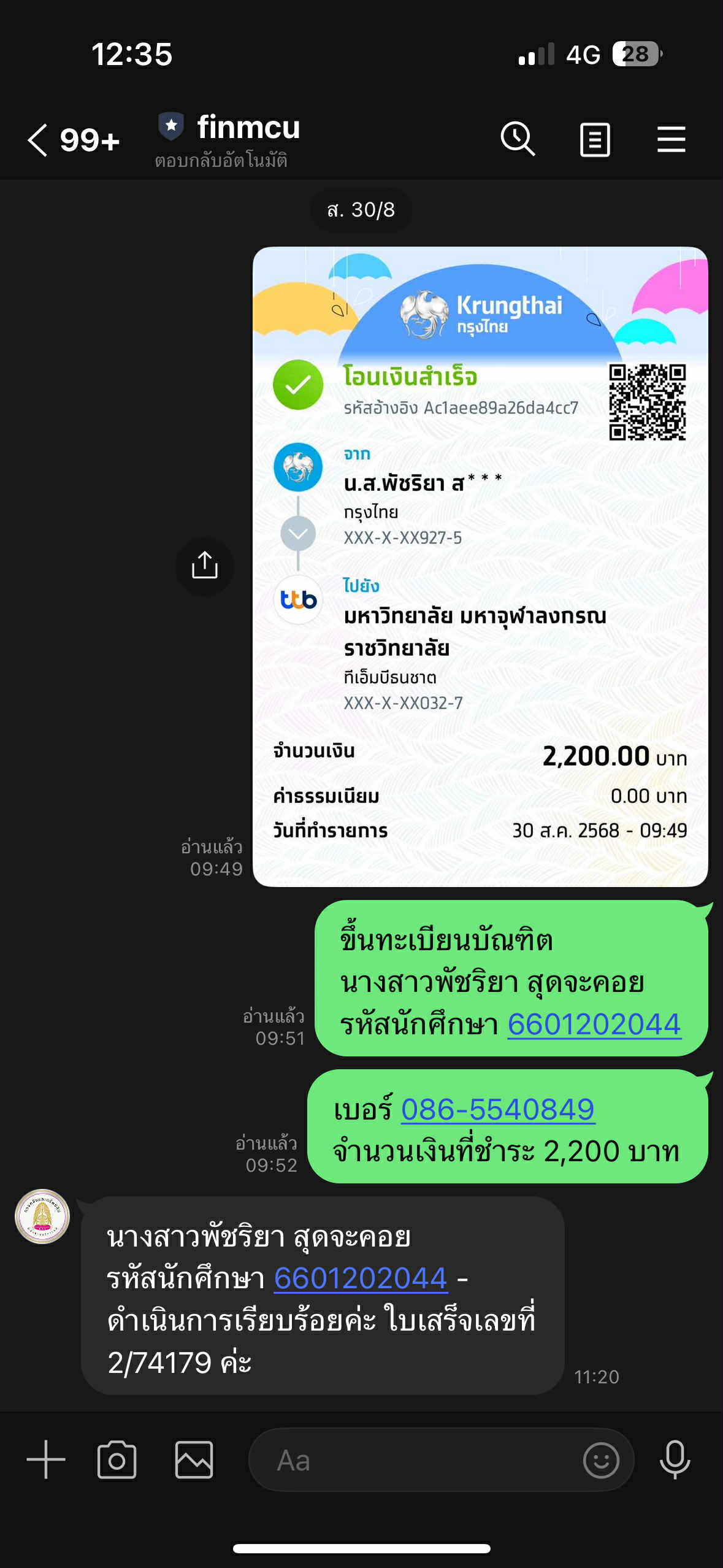 | รหัสนิสิต : 6601202044 | ชื่อ : นางสาวพัชริยา | ฉายา: - | นามสกุล: สุดจะคอย |