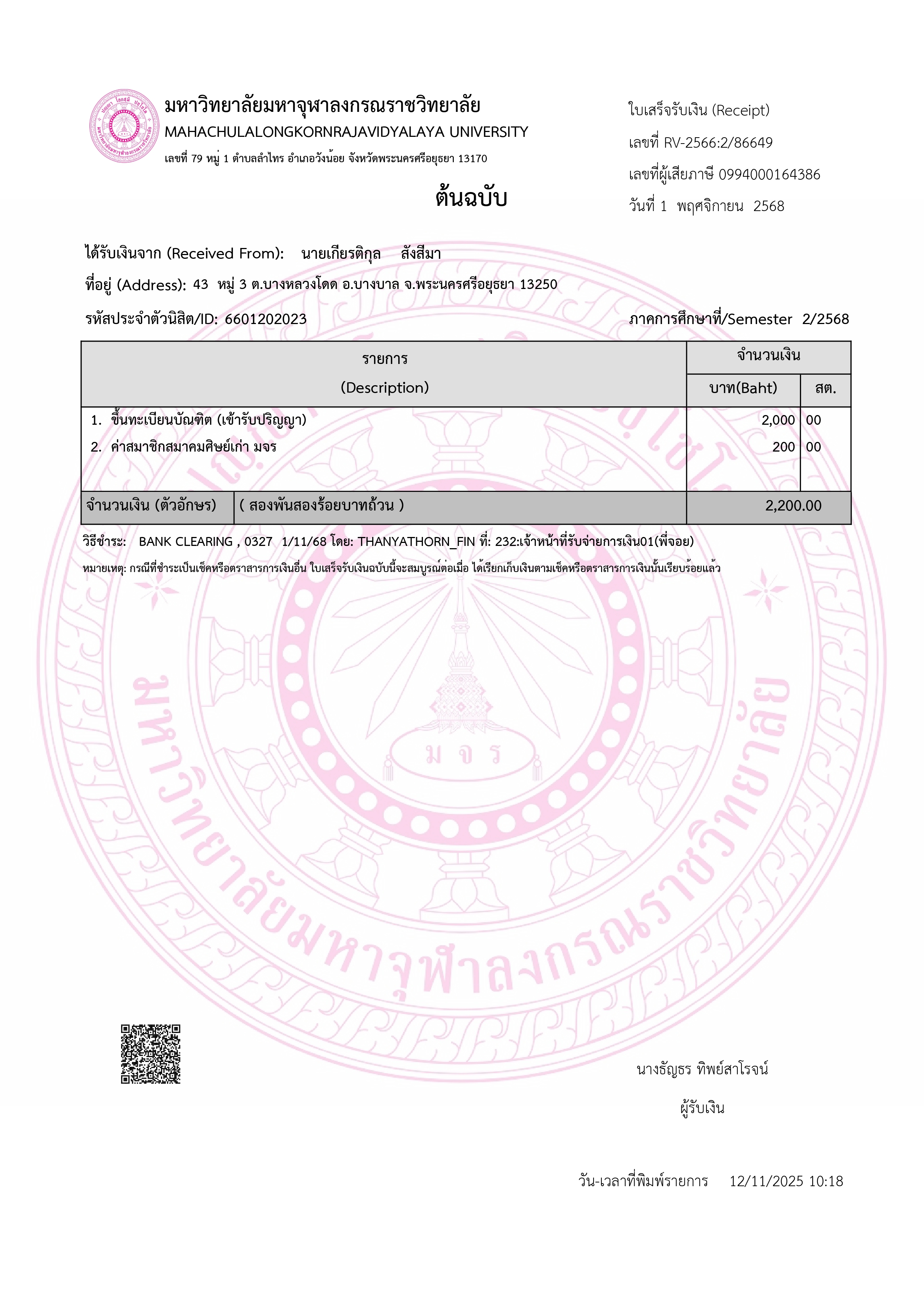 | รหัสนิสิต : 6601202023 | ชื่อ : นายเกียรติกุล | ฉายา: - | นามสกุล: สังสีมา |