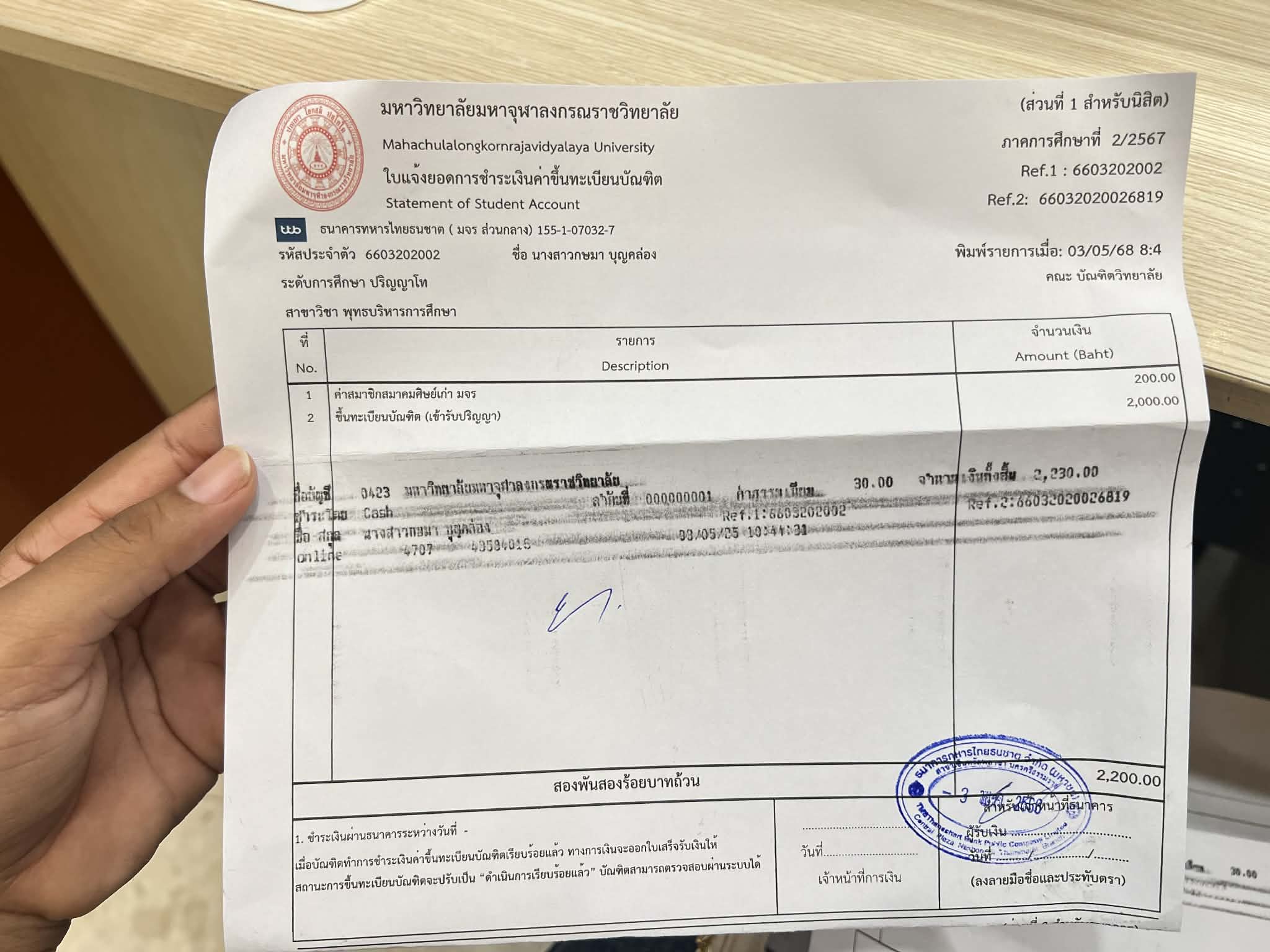 | รหัสนิสิต : 6603202002 | ชื่อ : นางสาวกษมา | ฉายา: - | นามสกุล: บุญคล่อง |
