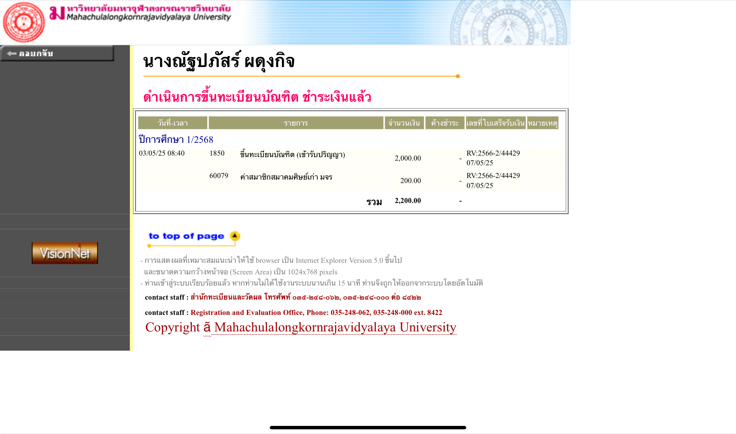 | รหัสนิสิต : 6603202035 | ชื่อ : นางณัฐปภัสร์ | ฉายา: - | นามสกุล: ผดุงกิจ |
