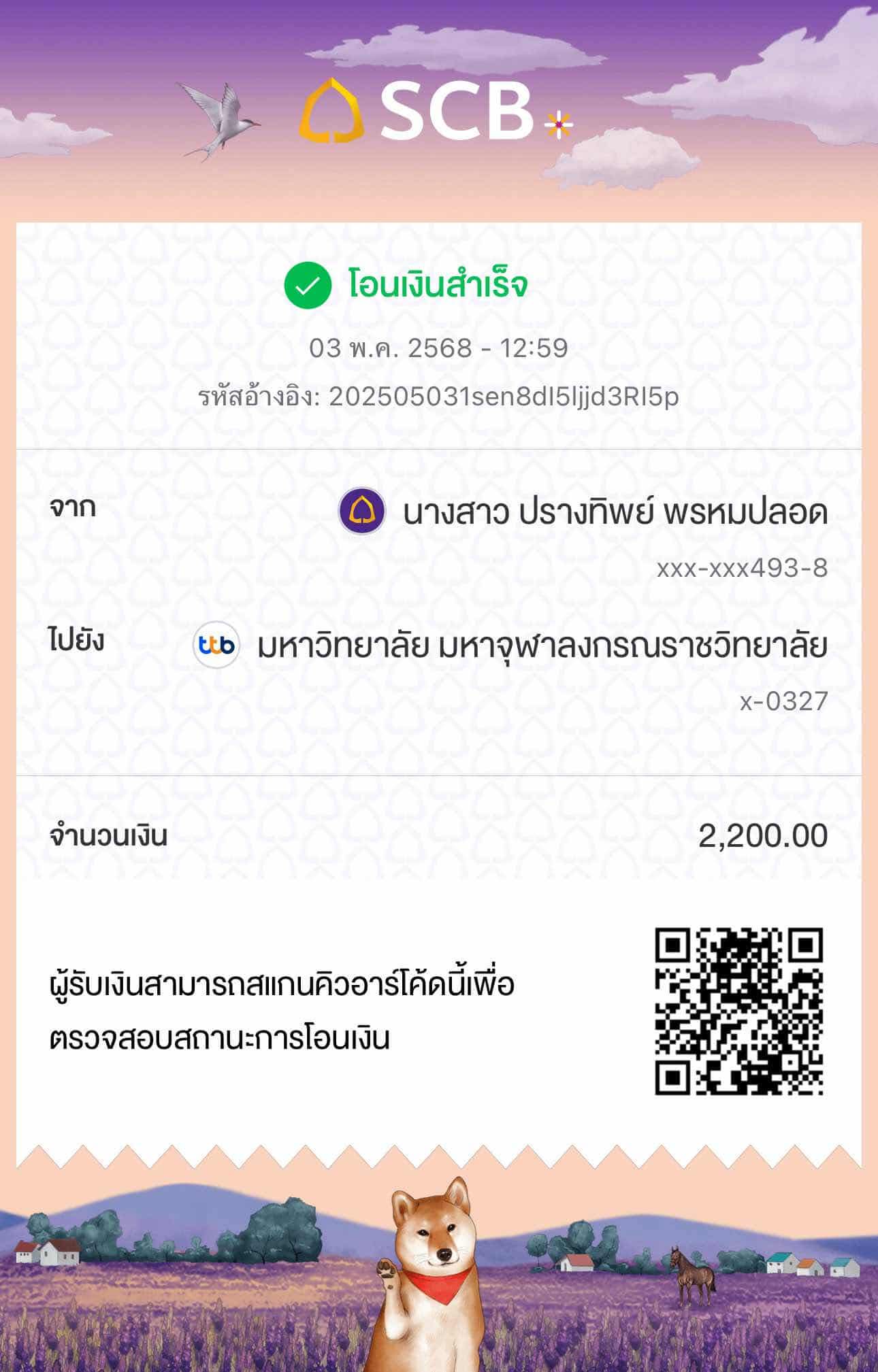 | รหัสนิสิต : 6603202036 | ชื่อ : นางสาวปรางทิพย์ | ฉายา: - | นามสกุล: พรหมปลอด |