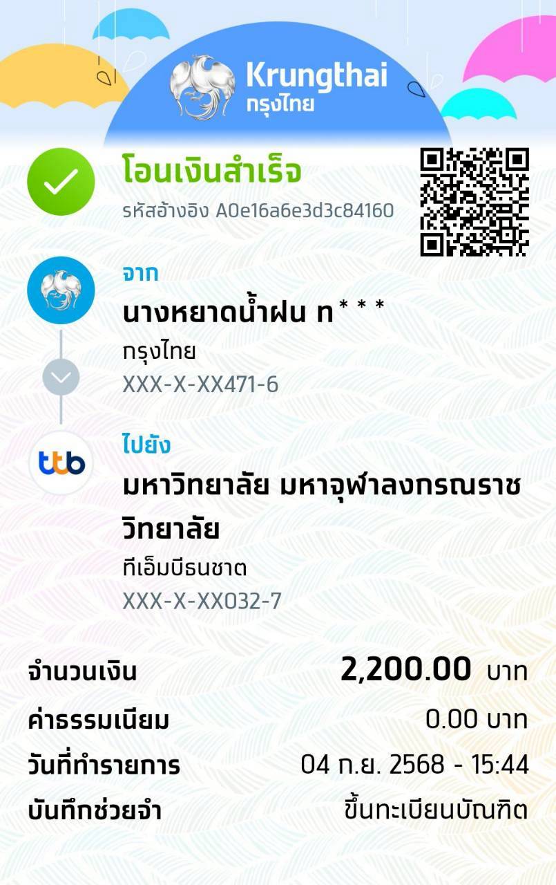 | รหัสนิสิต : 6609202059 | ชื่อ : นางหยาดน้ำฝน | ฉายา: - | นามสกุล: ทองคำสาร |