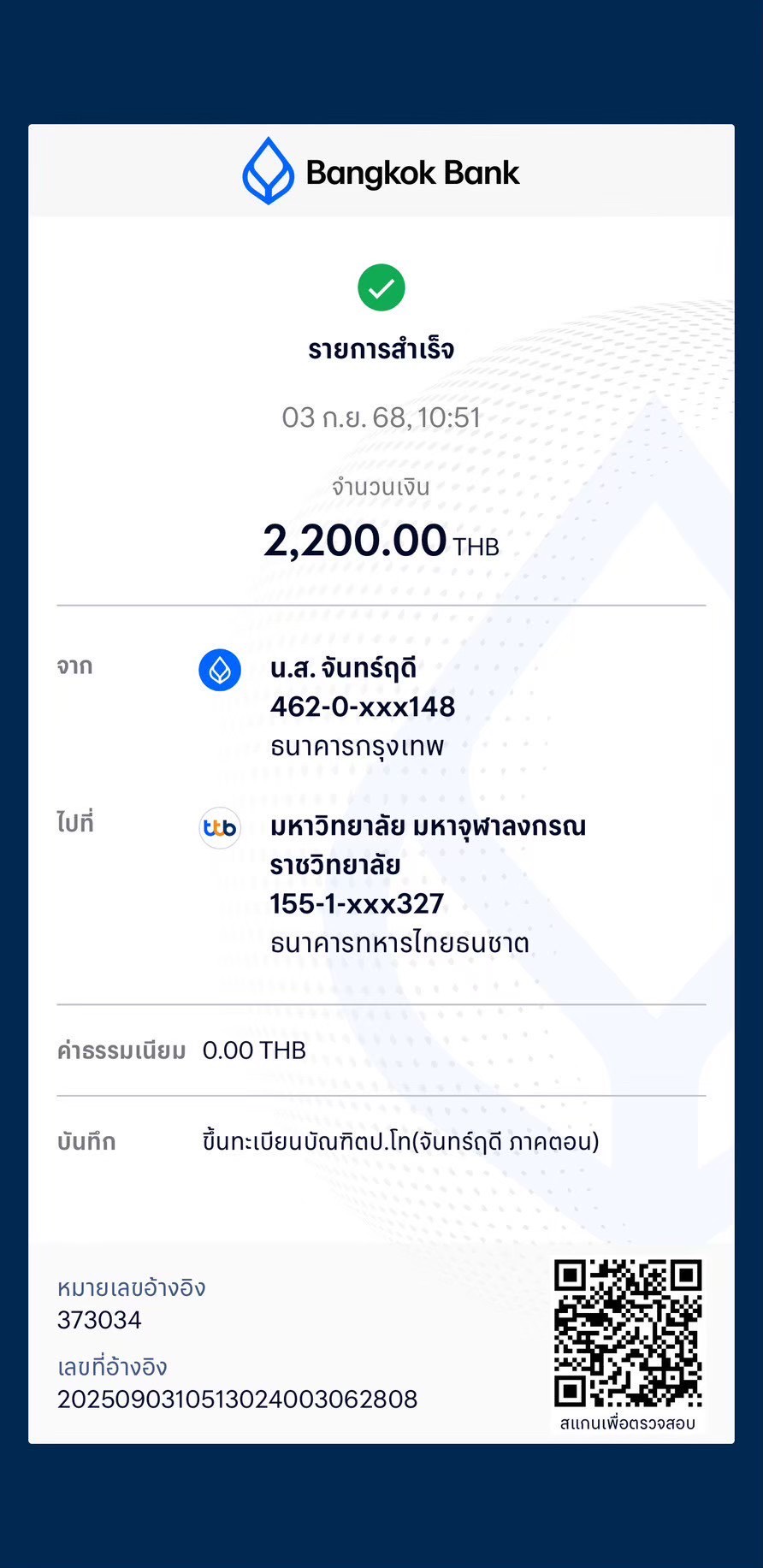 | รหัสนิสิต : 6609202063 | ชื่อ : นางสาวจันทร์ฤดี | ฉายา: - | นามสกุล: ภาคตอน |