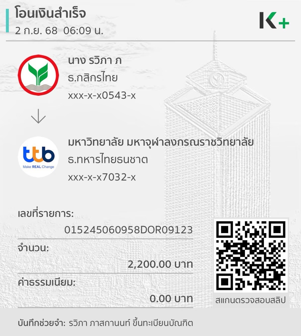 | รหัสนิสิต : 6609202078 | ชื่อ : นางรวิภา | ฉายา: - | นามสกุล: ภาสกานนท์ |