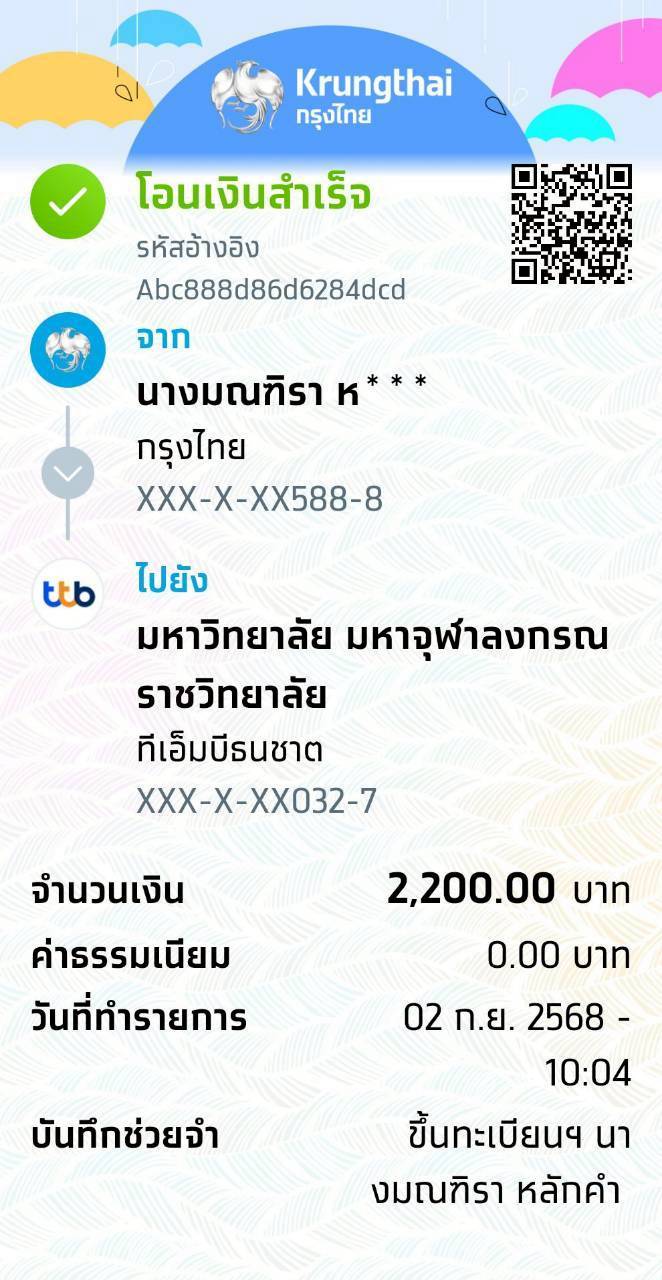 | รหัสนิสิต : 6609202080 | ชื่อ : นางมณฑิรา | ฉายา: - | นามสกุล: หลักคำ |