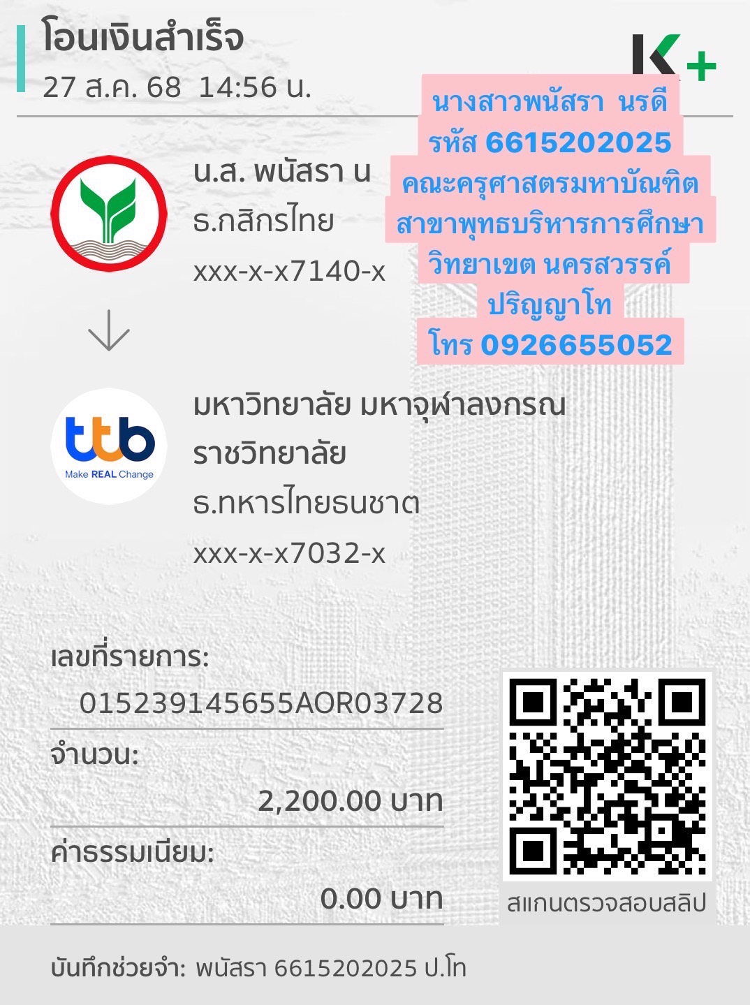 รหัสนิสิต : 6615202025 ชื่อ : นางสาวพนัสรา ฉายา: - นามสกุล: นรดี