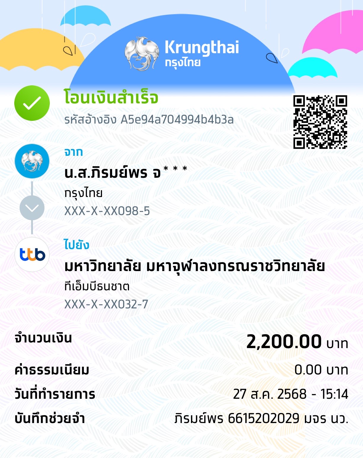 | รหัสนิสิต : 6615202029 | ชื่อ : นางสาวภิรมย์พร | ฉายา: - | นามสกุล: จิตร์ประไพ |