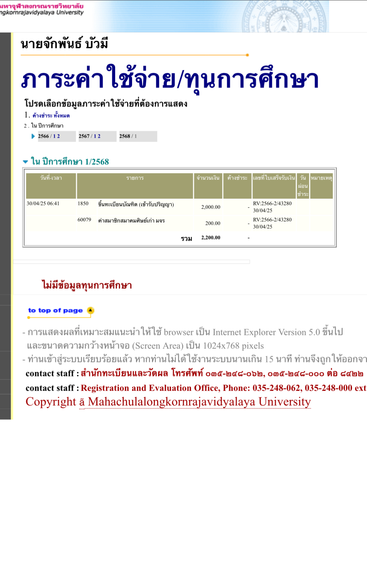| รหัสนิสิต : 6612202022 | ชื่อ : นายจักพันธ์ | ฉายา: - | นามสกุล: บัวมี |