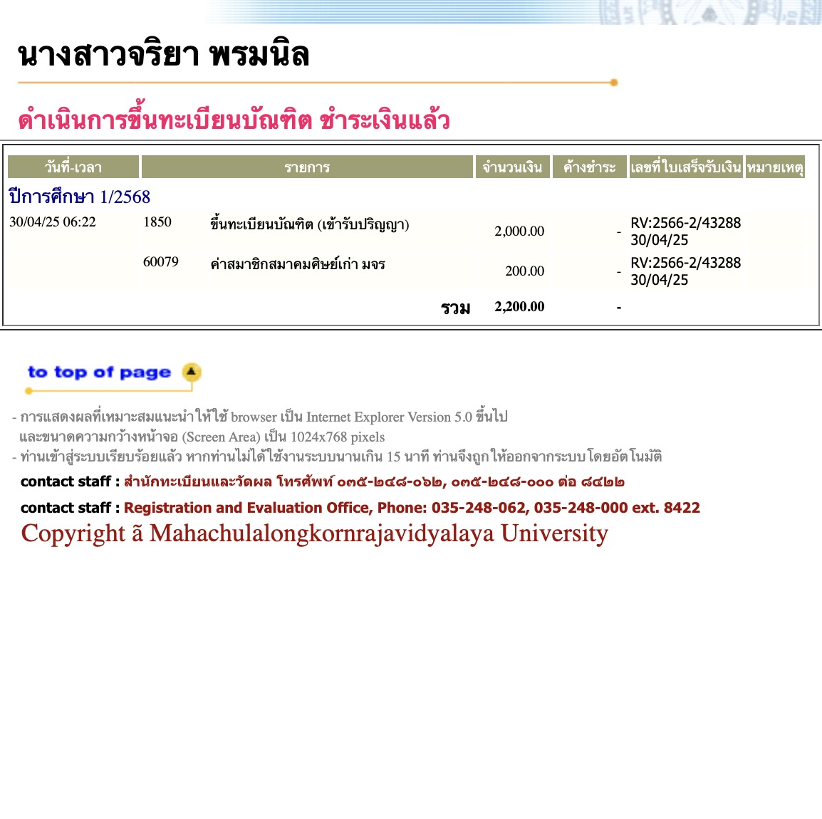 | รหัสนิสิต : 6612202035 | ชื่อ : นางสาวจริยา | ฉายา: - | นามสกุล: พรมนิล |