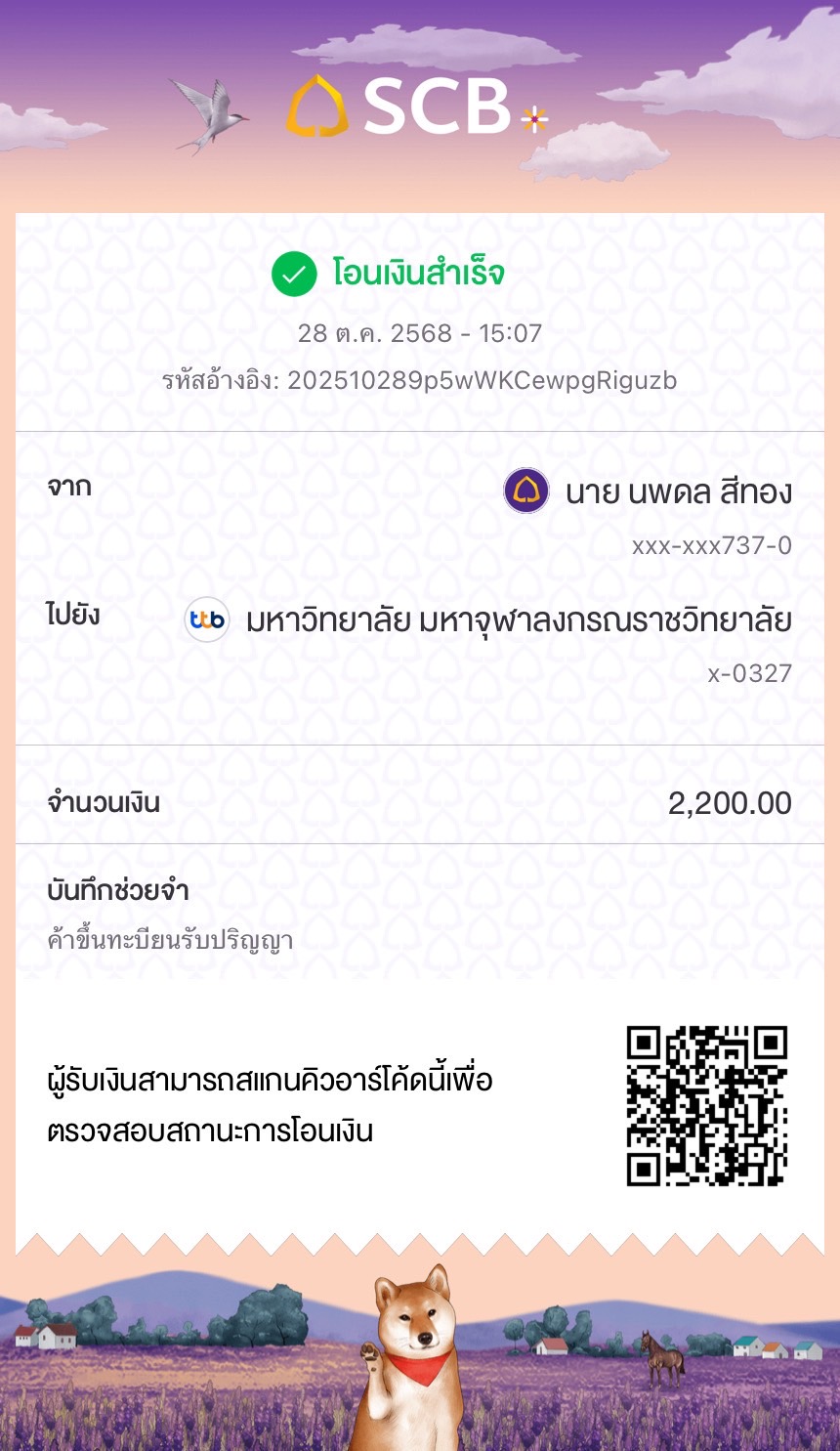 ใบเสร็จรับเงิน/เอกสารยืนยันการชำระเงิน(แนบเอกสาร)