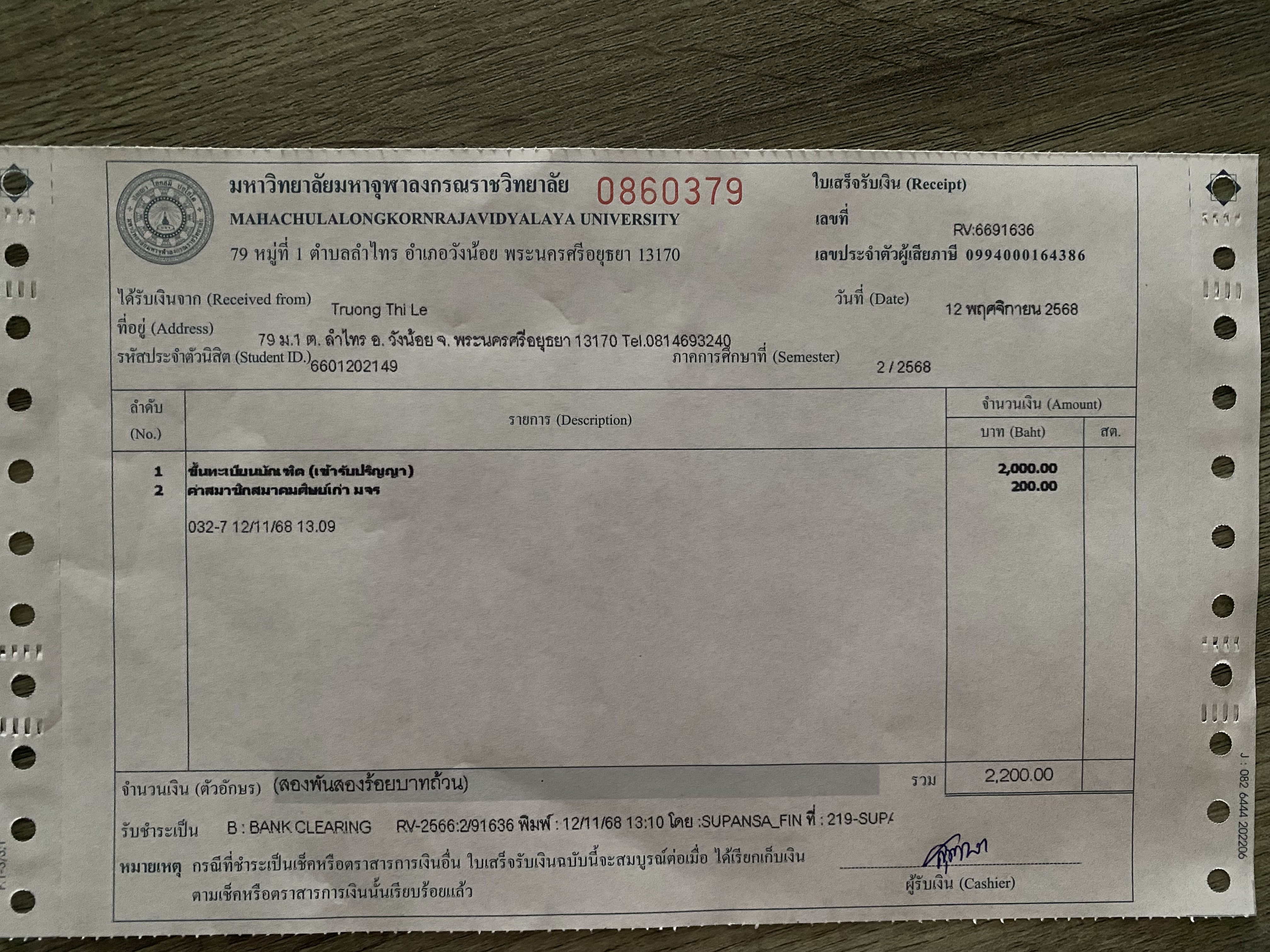 | รหัสนิสิต : 6601202149 | ชื่อ : Truong Thi Le | ฉายา: - | นามสกุล: - |