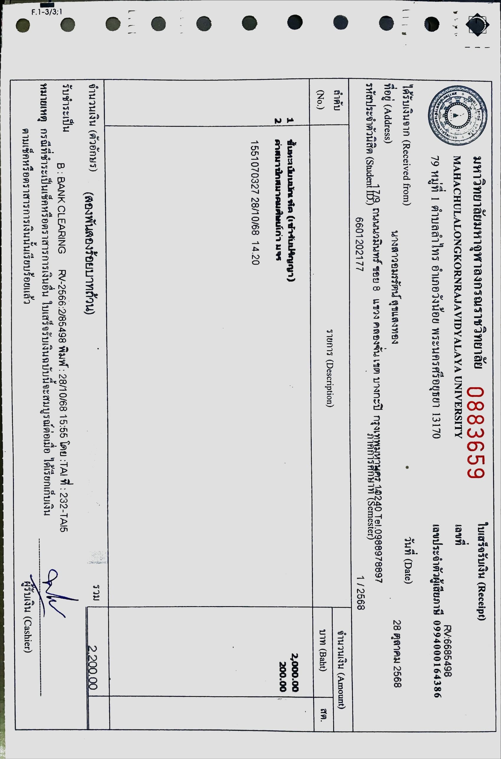 | รหัสนิสิต : 6601202177 | ชื่อ : นางสาวอมรรัตน์ | ฉายา: - | นามสกุล: สุขแสงทอง |