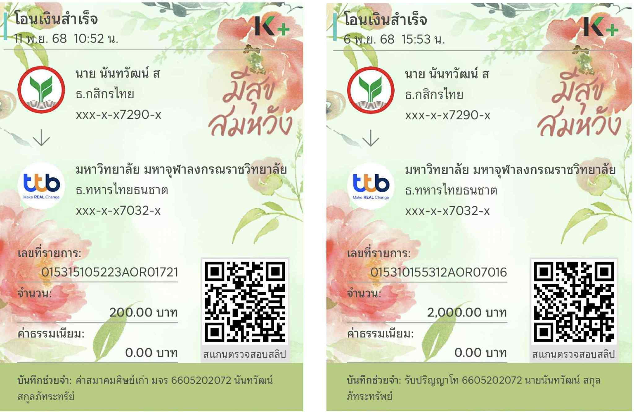 | รหัสนิสิต : 6605202072 | ชื่อ : นายนันทวัฒน์ | ฉายา: - | นามสกุล: สกุลภัทระทรัพย์ |