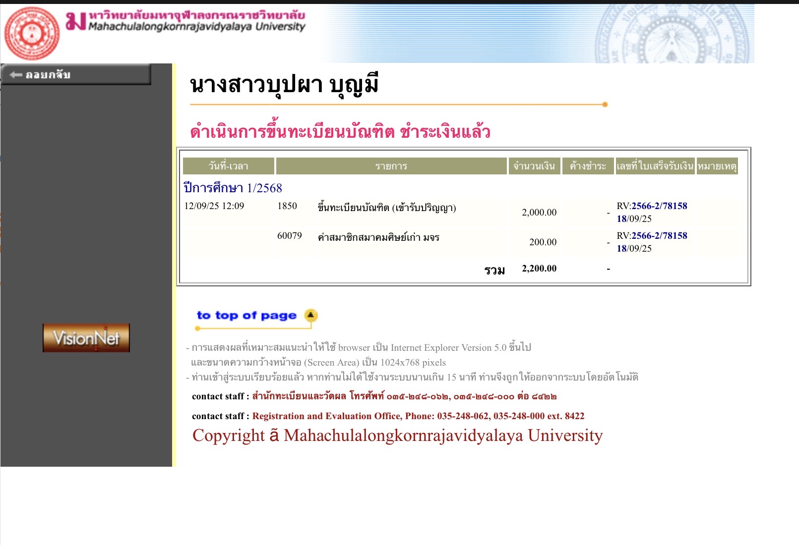 | รหัสนิสิต : 6501203146 | ชื่อ : นางสาวบุปผา | ฉายา: - | นามสกุล: บุญมี |