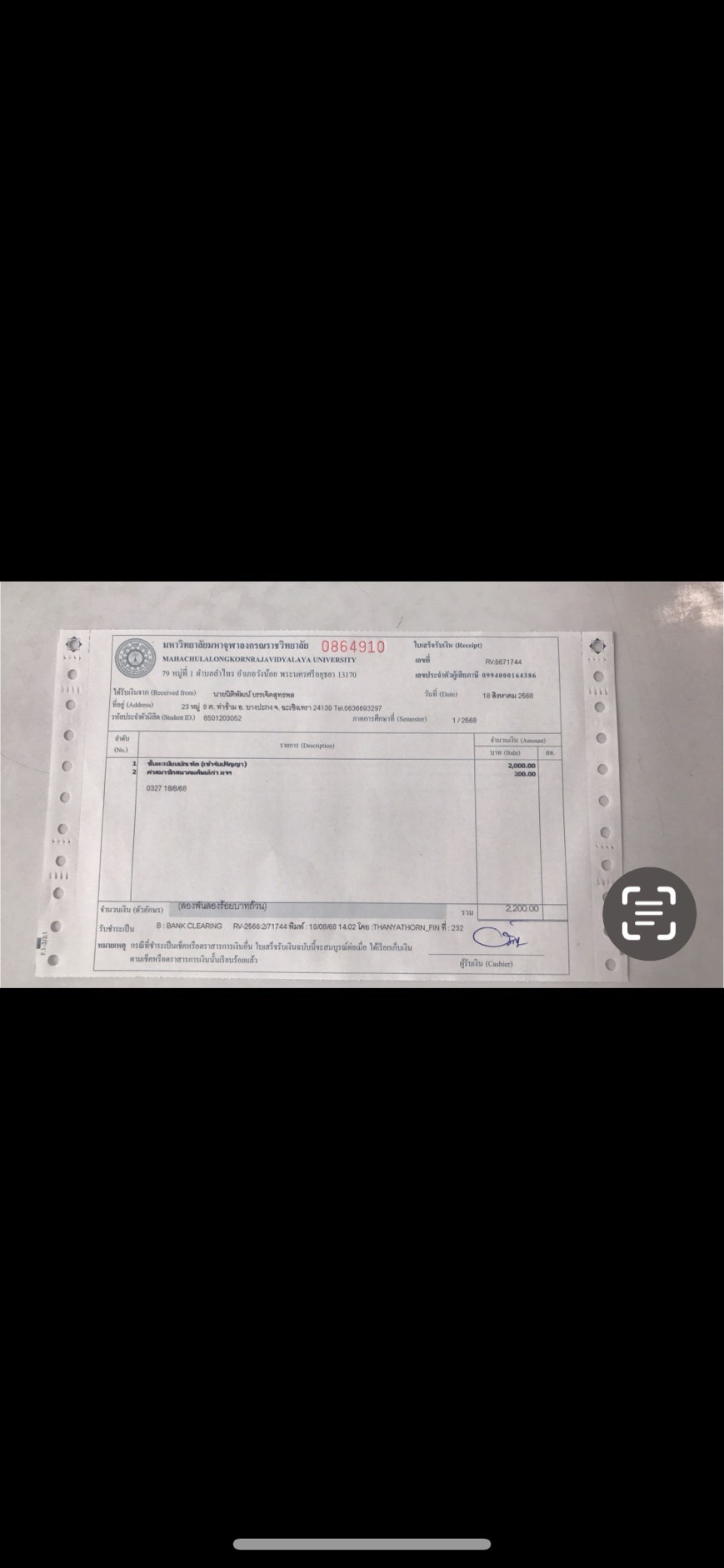 | รหัสนิสิต : 6501203052 | ชื่อ : นายนิติพัฒน์ | ฉายา: - | นามสกุล: บรรเจิดสุทธพล |