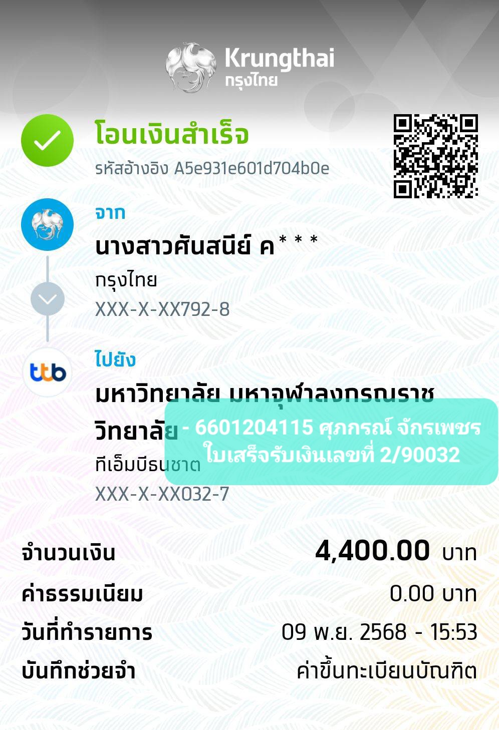 | รหัสนิสิต : 6601204115 | ชื่อ : นายศุภกรณ์ | ฉายา: - | นามสกุล: จักรเพชร |
