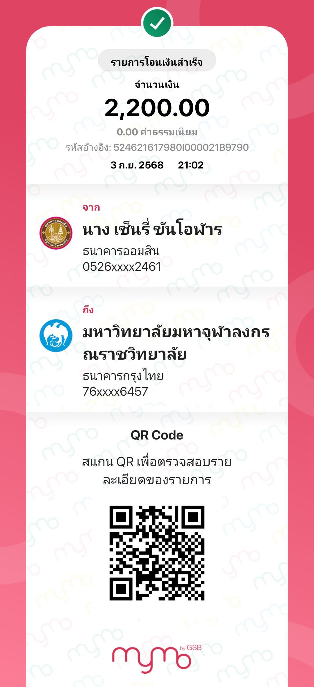 QR Code สำหรับสแกนเข้าร่วมพิธี